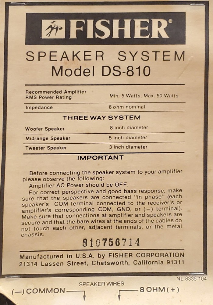 Tested & Working. Vintage Fisher DS-810 Floor 3-Way Speakers 50w 8ohms. Made in USA. In excellent condition based on age. See pictures for minor blemishes.
