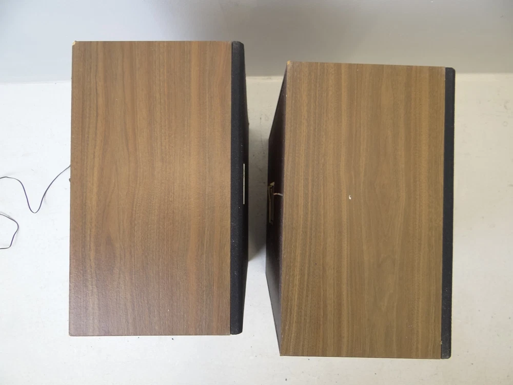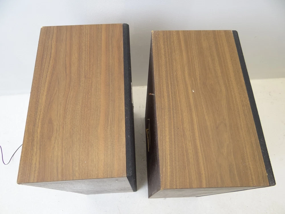 These items show overall wear including scratches, discoloration, staining, the front covers do not come off, the plug is missing from one of the speakers, and there is dirtiness found; these items have not been tested and we are unsure if they come in working condition if re-wired. These items measure approximately 13.75” x 8” x 22” at their largest dimensions, and these items are sold for parts or repair only. These items will need to be shipped in separate boxes. Please see pictures for more details. D9