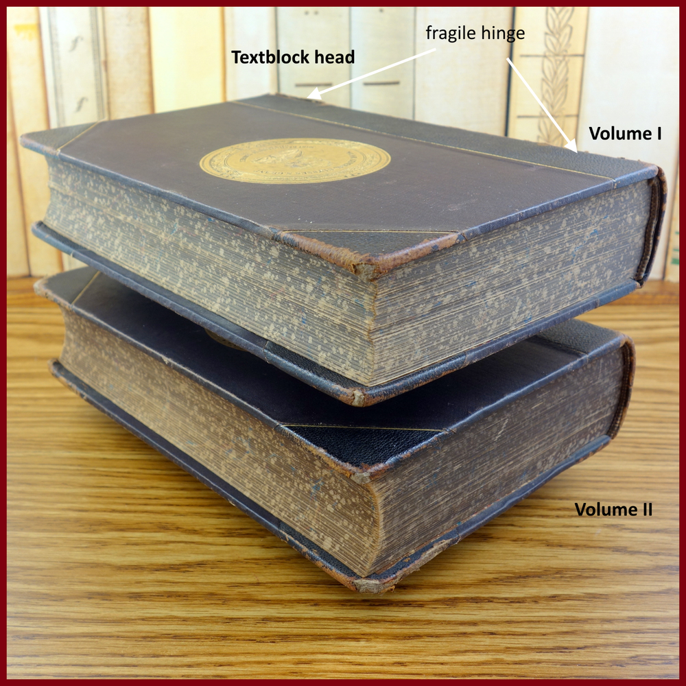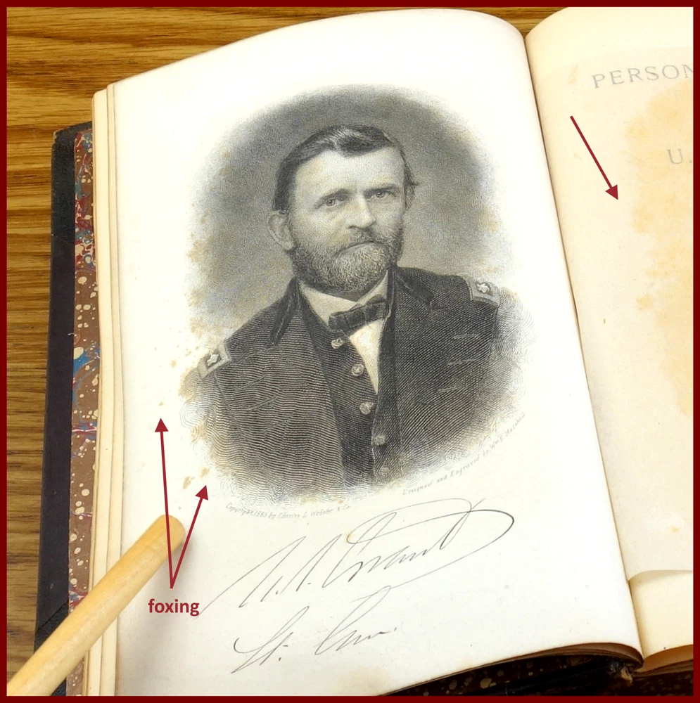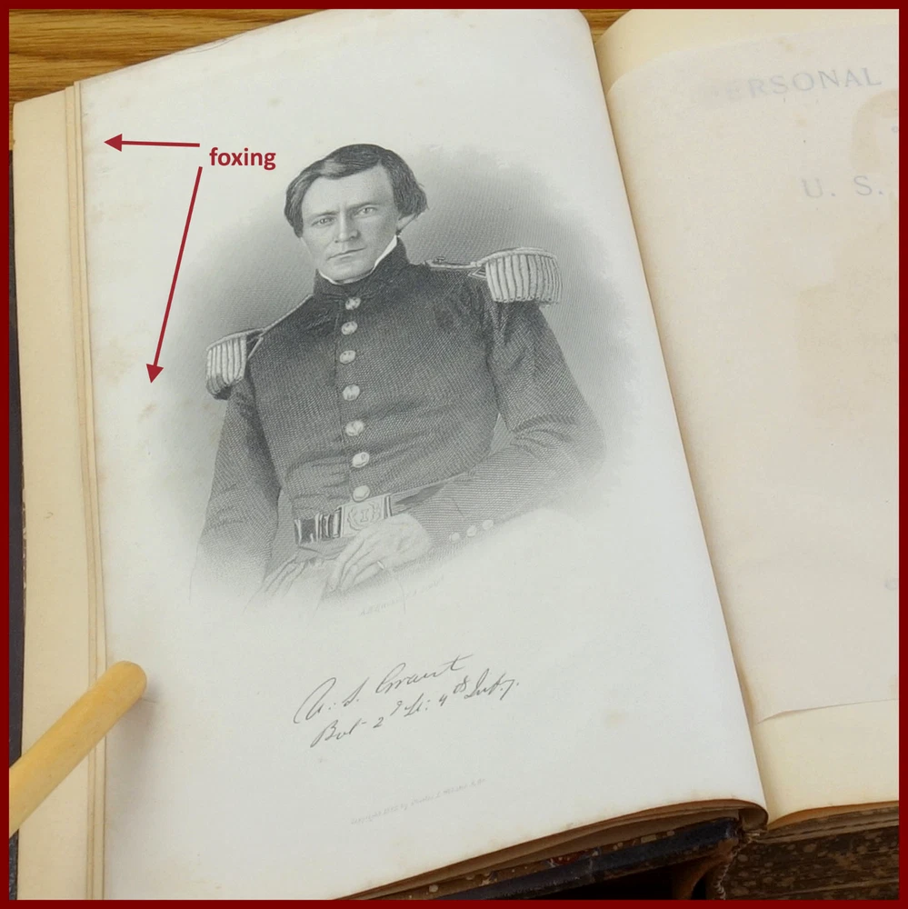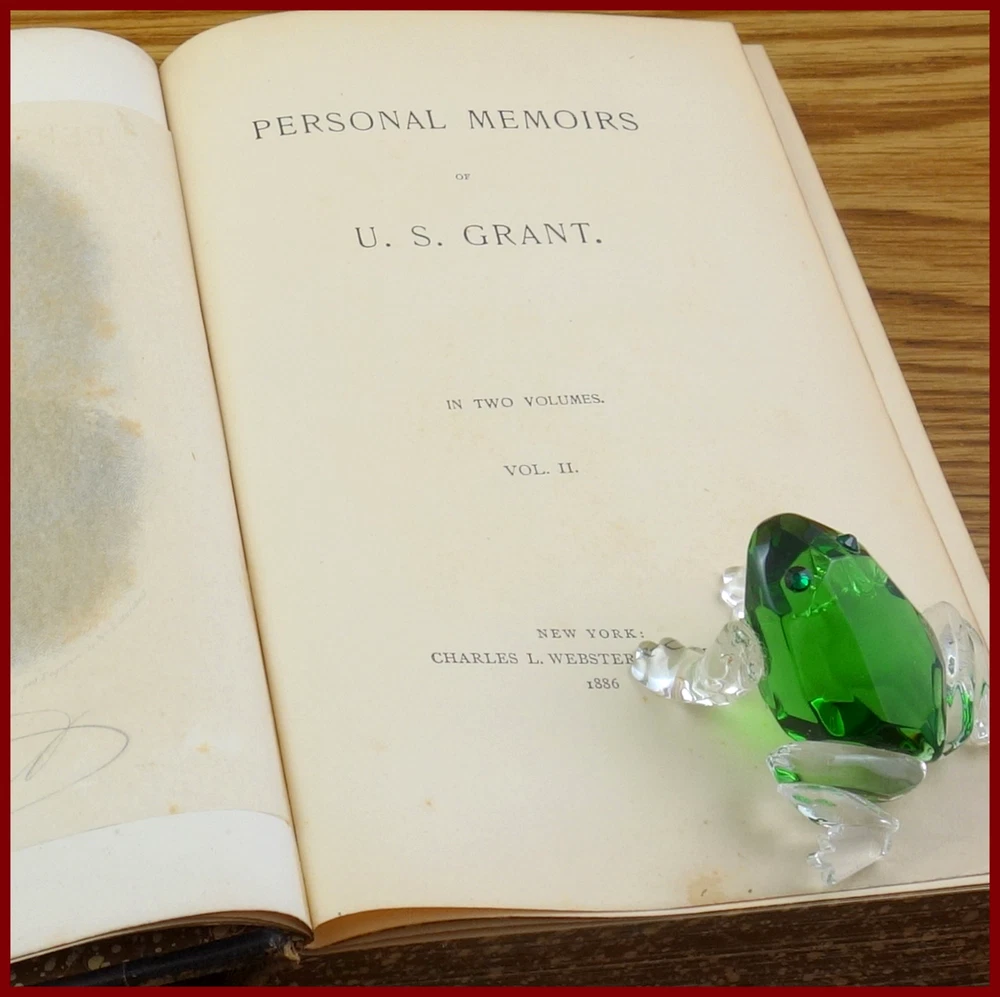 Here on offer is a very nice copy of Ulysses S. Grant's best-selling autobiography Personal Memoirs of U. S. Grant , chronicling more than forty years of his life: from his boyhood to his graduation from West Point in 1843, his prominent military career from the Mexican-American War through the Civil War, and finally his accomplished two-term presidency of the United States. This is a 1st American trade edition, 1st printing of the work published by Charles Webster & Co. in 1885-1886, half-bound in leather with gold government seals inlaid to the boards. There is no dust jacket with this copy. ******************************************************************************************************************* "Completed just days before his death and hailed by Mark Twain as 'the most remarkable work of its kind since the Commentaries of Julius Caesar,' this is the now-legendary autobiography of ULYSSES SIMPSON GRANT (1822-1885), 18th president of the United States and the Union general who led the North to victory in the Civil War. Though Grant opens with tales of his boyhood, his education at West Point, and his early military career in the Mexican-American war of the 1840s, it is Grant's intimate observations on the conduct of the Civil War, which make up the bulk of the work, that have made this required reading for history students, military strategists, and Civil War buffs alike. . . ." //////////////////////////////////////////////////////////////////////////////////////////////////////////////////////////////////////////////////////// Ulysses S. Grant (April 27, 1822 – July 23, 1885) was the 18th president of the United States, serving from 1869 to 1877. In 1865, as commanding general, Grant led the Union Army to victory in the American Civil War. Grant was born in Ohio and graduated from the United States Military Academy (West Point) in 1843. He served with distinction in the Mexican–American War, but resigned from the army in 1854 and returned to civilian life impoverished. In 1861, shortly after the Civil War began, Grant joined the Union Army and rose to prominence after securing victories in the western theater. . . . In 1866, President Andrew Johnson promoted Grant to General of the Army. Later, Grant broke with Johnson over Reconstruction policies. A war hero, drawn in by his sense of duty, Grant was unanimously nominated by the Republican Party and then elected president in 1868. As president, Grant stabilized the post-war national economy, supported congressional Reconstruction and the Fifteenth Amendment, and prosecuted the Ku Klux Klan. Under Grant, the Union was completely restored. An effective civil rights executive, Grant signed a bill to create the United States Department of Justice and worked with Radical Republicans to protect African Americans during Reconstruction. In 1871, he created the first Civil Service Commission, advancing the civil service more than any prior president. Grant was re-elected in the 1872 presidential election, but was inundated by executive scandals during his second term. . . . Leaving office in 1877, Grant undertook a world tour, becoming the first president to circumnavigate the world. In 1880, he was unsuccessful in obtaining the Republican nomination for a third term. In 1885, impoverished and dying of throat cancer, Grant wrote his memoirs, covering his life through the Civil War, which were posthumously published and became a major critical and financial success. At his death, Grant was the most popular American and was memorialized as a symbol of national unity. . . . The above text was taken from, respectively, Cosimo Classic (via Google Books) and Wikipedia. [Grant, Ulysses S. Personal Memoirs of U. S. Grant. United States: Cosimo Classics, 2006.]