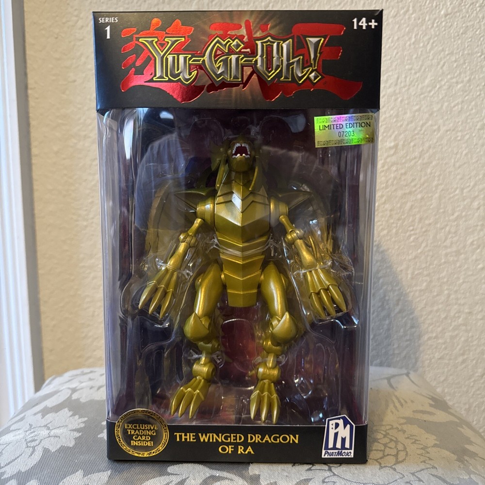 The Phatmojo Action Figure of The Winged Dragon of Ra is a limited edition, exclusive collectible from the Yu-Gi-Oh! franchise. This gold-colored figure was manufactured in 2020 in China and is inspired by the popular TV show Yu-Gi-Oh! It is a must-have for fans of the series and collectors of action figures.