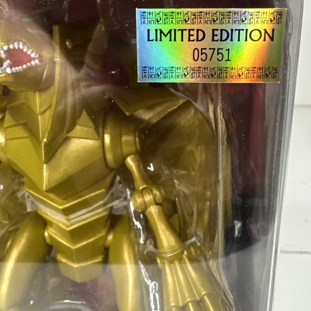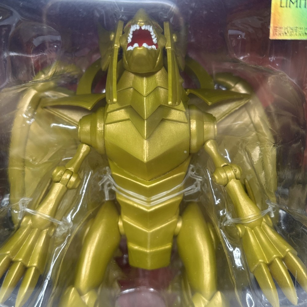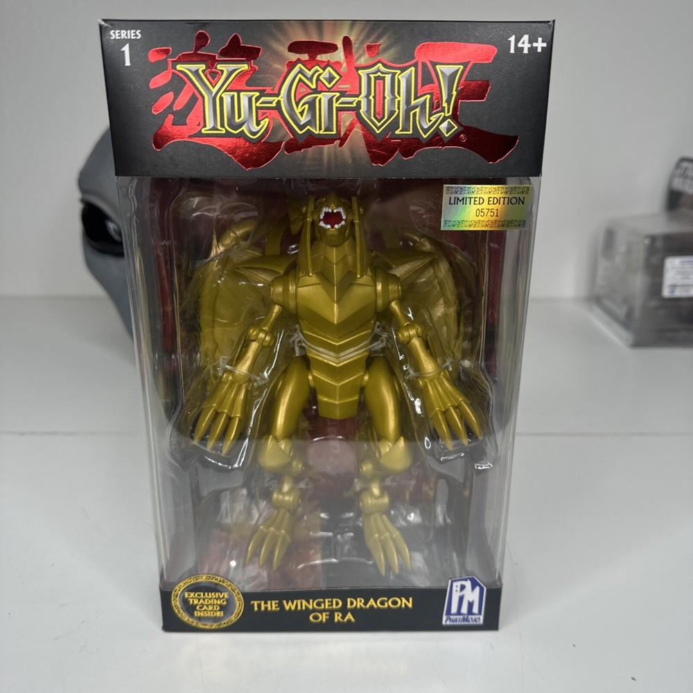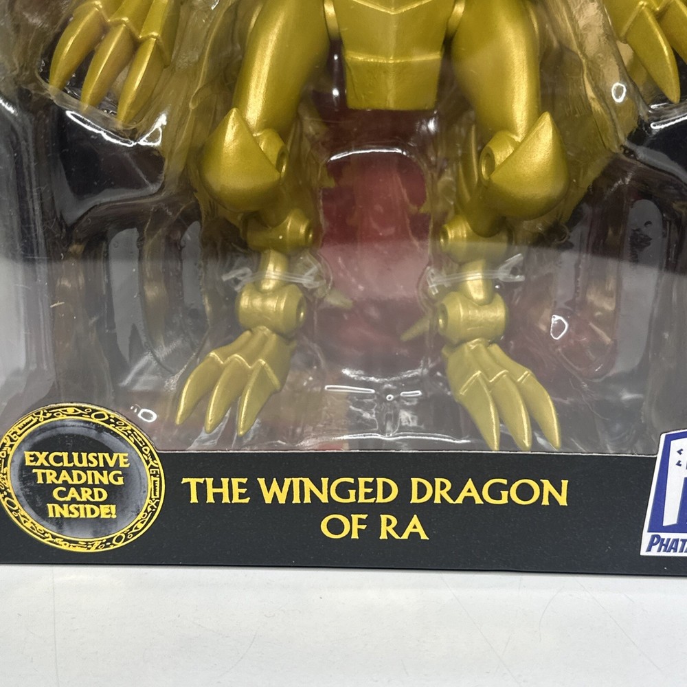 The Phatmojo Limited Edition Action Figure features The Winged Dragon of Ra from the Yu-Gi-Oh! franchise. This exclusive gold-colored figure was manufactured in 2020 in China and is a must-have for fans of the popular TV show. With intricate details and high-quality craftsmanship, this collectible piece is a standout addition to any Yu-Gi-Oh! memorabilia collection. Combine shipping with other non media items.