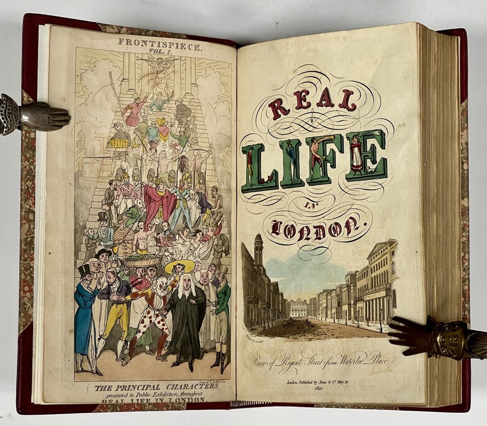 REAL LIFE In LONDON Author: [Parody of Egan, Pierce]. An Amatuer Title: REAL LIFE In LONDON Publication: London: Printed for Jones & Co., 1821, 1824 Edition: 1st edition Description: 2 volumes [x, [3] - 656; [2], viii, [4], [3] - 668 pp]. 30 hand-colored plates. 8vo. Modern maroon half-leather binding with marbled boards. Renewed eps. Bindings - Fine, with bookplate. Textblock - VG (usual age-toning, signs of use]. A satrical look at the times. Seller ID: 4737 Subject: Literature Tavistock Books, ABAA Reno, NV Established in 1989, Tavistock Books has recently moved from its former long-time Alameda CA location to Reno NV. We are a general antiquarian business, with material ranging from Aviation to Zoology, from the 16th C to the 21st. We have specialties in Dickens, History of Nursing, Children’s Serial Fiction & Western Americana. Visits may be arranged by appointment, generally 10 am to 3 pm, Pacific Time. Guarantee We guarantee everything we sell and any item may be returned for any reason within 30 days of receipt. If the return is due to an error on our part, we will reimburse you the cost of your return. Please do exercise the same care in packaging, as we do in shipping all items purchased from us. We are members of the Antiquarian Booksellers' Association of America (ABAA), and the International Online Booksellers Association (IOBA). Shipping We are happy to ship to buyers outside of the United States. Please contact us for an exact shipping quote. All books shipped to US destinations are usually sent US Post Office Media Mail, with despatch usually within 72 hours of payment receipt. Delivery typically takes a week, but may be longer, especially during the holidays. Faster shipping is available, please contact us for a price quote. We will combine shipping on items purchased at the same time. We prefer PayPal. Feedback We leave feedback for buyers once they have posted feedback for us. If you are unhappy with any aspect of a transaction with us, please contact us immediately. We work hard to keep buyers happy and to promptly resolve the rare problem that may arise. This listing was created by Bibliopolis.