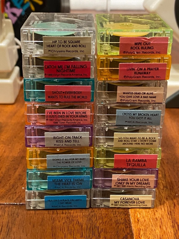 Hello and thank you for your interest in this lot of 80's incredible vintage memorabilia. You are bidding on a set of amazing music history. The Pocket Rockers became popular in the late 80's, and were enjoyed by those who wanted to take their music on the go. That was me! :) This set includes 16 cassettes, two portable units and two powered speakers that complete the collection. Everything works perfectly as the day when they were purchased. I'm the original owner, and have truly enjoyed using them and sharing them with friends as an adult. They are bound to become highly collectable. This is your opportunity to own this piece of great music history. Shipping is free within the United States. I started this auction at a low price, and wish you the best of luck in your bidding.