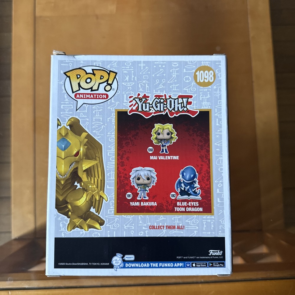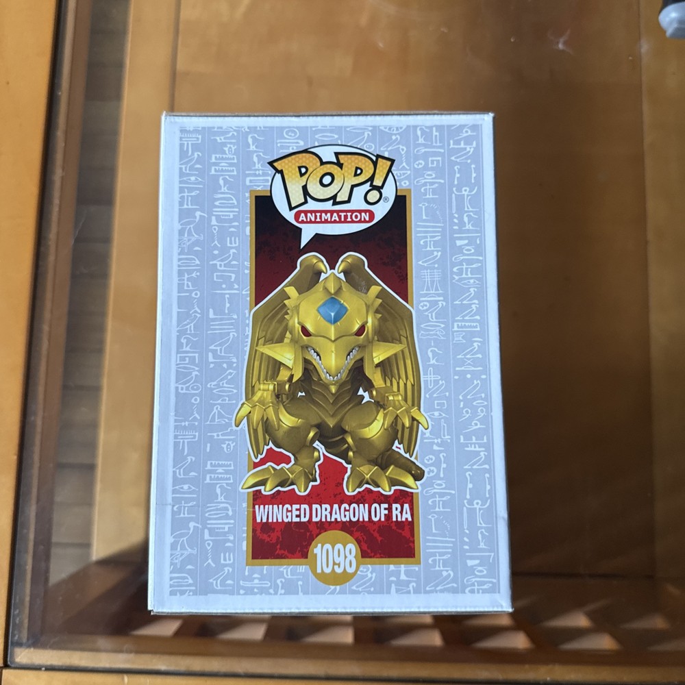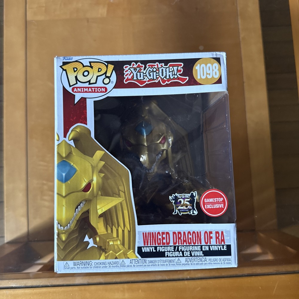 The Pop 6 in: Yu-Gi-Oh! - Winged Dragon of Ra (Metallic) (Super) - GameStop figure is a collectible item featuring a metallic version of the powerful Egyptian God Card from the popular anime and trading card game, Yu-Gi-Oh! This Super edition of the figure is exclusive to GameStop, making it a sought-after addition for collectors and fans of the series. With its detailed design and unique metallic finish, this figure is sure to stand out in any collection of collectible figures and bobbleheads….. in new condition! Never been open!