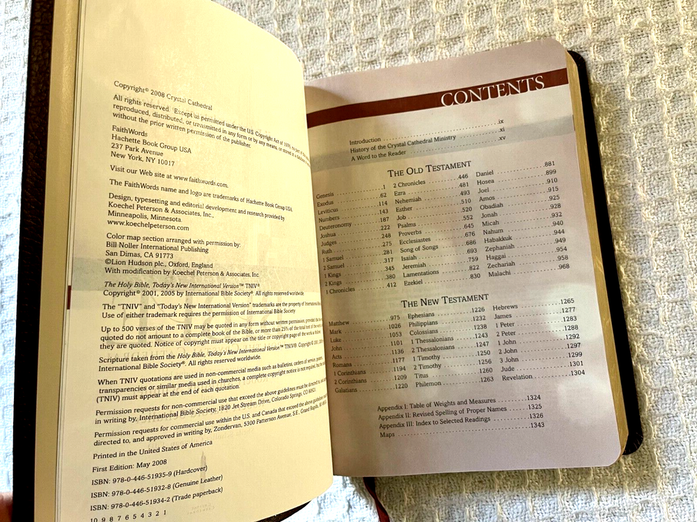 Power for Life Holy Bible From the Crystal Cathedral Leather Bound Approximately 9.5" x 7" Red Letter Edition Includes area for Notes and Color Maps Very good pre-owned condition. All pages are clean. Cover has no marks. See pictures for details. Thanks for looking! I try my best to have accurate and detailed descriptions of each item itself. Being human I may miss a few things here and there. However, if there is an oversight on my part I will gladly work with you to solve the problem. Please view my pictures carefully for complete description information and be mindful that actual color may vary slightly in pictures due to photo lighting and/or different color monitor settings. Item will ship promptly within one-two business days via USPS with delivery confirmation upon clearing of payment. Payment is required within 48 hours of auction ending/purchase completion. I only ship globally through eBay global shipping. I will get your item into the mail within 2 days, but I have no control after that as to how long the global shipping center will take to process your item and how long your local delivery system will take to deliver your item. I also have no control over extra shipping fees or charges which are imposed after the item leaves me. FEEDBACK: I would appreciate it if, once you have received your item(s), you provide me with positive feedback. I will leave positive feedback for you as well. If, for any reason, you are dissatisfied with your item(s), please be sure to contact me for resolution prior to leaving negative or neutral feedback. Thanks so much!