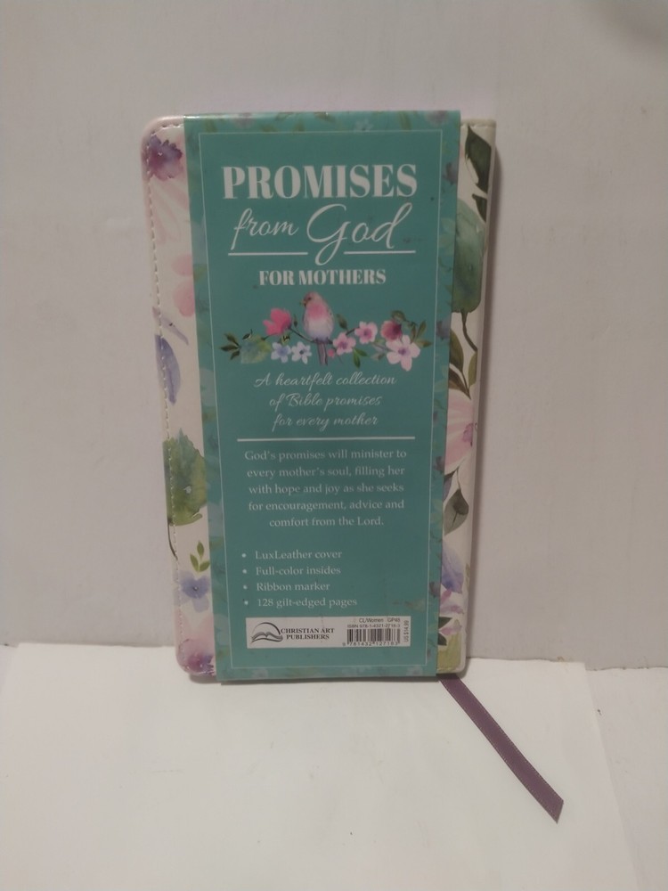The product is a leather-bound book titled "Promises from God for Mothers Lux-Leather" published by Christian Art Publishers in 2018. It is written in English and contains 128 pages. The book explores topics related to Christian life in general and is designed for mothers seeking spiritual guidance and encouragement from God's promises.