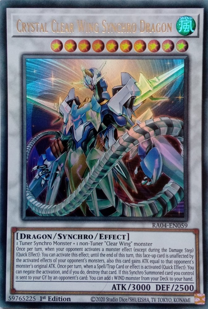 RA04-EN059 CRYSTAL CLEAR WING SYNCHRO DRAGON ULTRA RARE 1ST EDITION ALL YU-GI-OH CARDS I SELL ARE KONAMI TOURNAMENT LEGAL. CARDS ARE ALL BRAND NEW AND IN MINT CONDITION. POSTAGE IS FREE SO YOU CAN BUY AS MANY CARDS AS YOU WANT FROM US AND NOT PAY A PENNY POSTAGE. IF YOU HAVE ANY QUESTIONS PLEASE FEEL FREE TO CONTACT ME. Track Page Views With Auctiva's FREE Counter