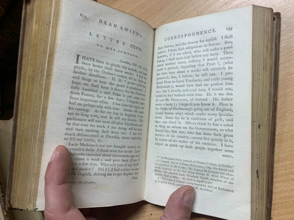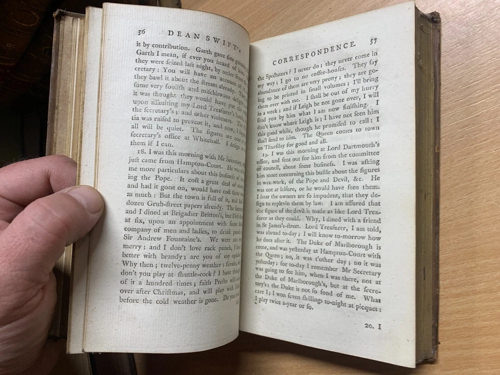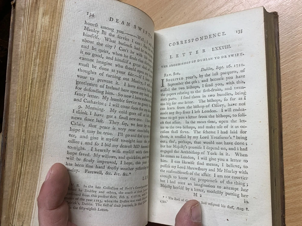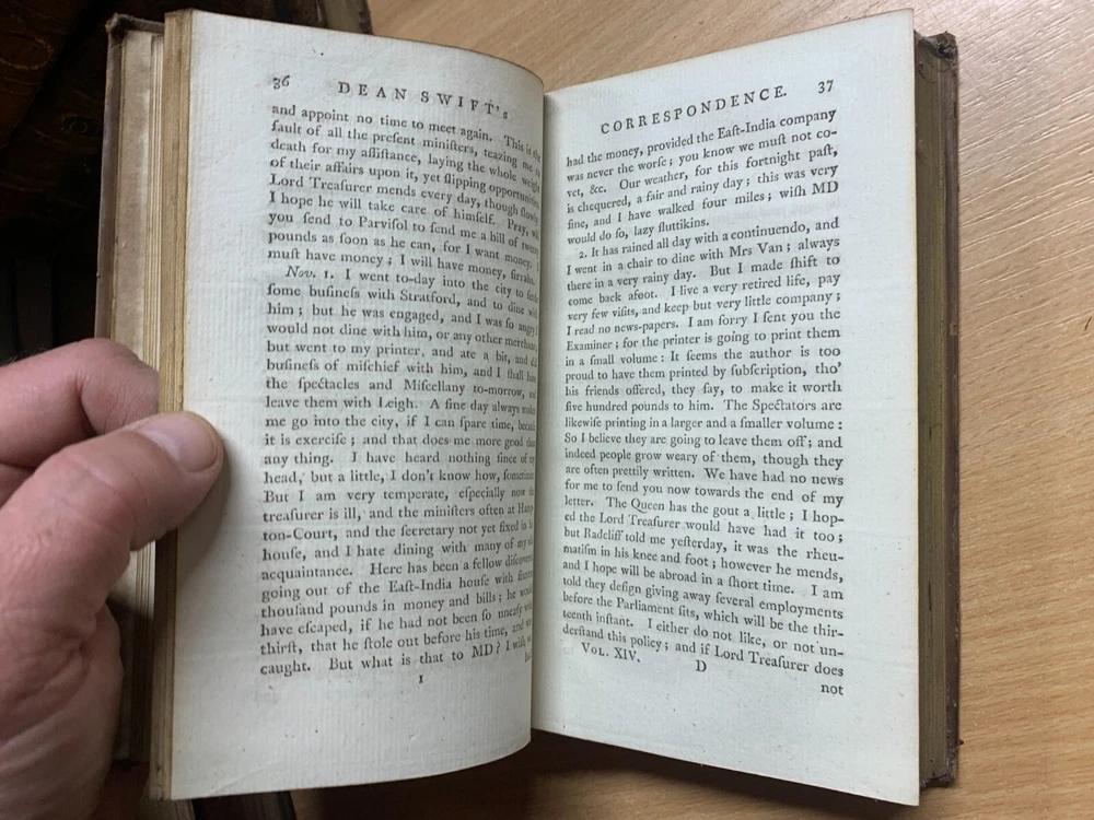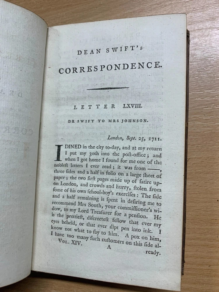 *RARE* 1784 "THE WORKS OF JONATHAN SWIFT" VOL 14 ANTIQUE LEATHER BOOK (T3) Great *RARE* antique book from 1784 containing the correspondence and letters of Jonathan Swift. Volume 14 only from an original set of 18 volumes. Photo 16 shows a personal library label on the inside cover. Binding and pages inside are in great condition especially as the book is 239 years old. Measures 18cm tall x 10.5cm wide. NOTE: THIS IS THE ONLY 1784 VOLUME 14 COPY FOR SALE ON EBAY LOCATED IN THE UK AT TIME OF LISTING! See photos for content pages and examples of pages inside. Discounted P&P for multiple purchases! (either send me an invoice request or i'll refund extra back to you) PLEASE READ BEFORE BUYING: I try my best to genuinely describe good & bad points (if any!). Happy to answer any questions before you purchase. I post items same day if purchased before 10am (UK time) otherwise it will be posted the next day except for Wednesdays (I work from home Wednesdays), weekends & public holidays. Im a friendly genuine seller. Postage price includes cost of packaging. Positive feedback always left for buyers. Feel free to sign up to my eBay Shop newsletter to see new listings (new items are added nearly every day). Happy bidding!! View more great items Great *RARE* antique book from 1784 containing the correspondence and letters of Jonathan Swift. Volume 14 only from an original set of 18 volumes. Photo 16 shows a personal library label on the inside cover. Binding and pages inside are in great condition especially as the book is 239 years old. Discounted P&P for multiple purchases! (either send me an invoice request or i'll refund extra back to you) I try my best to genuinely describe good & bad points (if any!). Happy to answer any questions before you purchase. I post items same day if purchased before 10am (UK time) otherwise it will be posted the next day except for Wednesdays (I work from home Wednesdays), weekends & public holidays. Feel free to sign up to my eBay Shop newsletter to see new listings (new items are added nearly ev