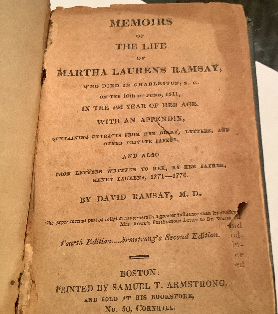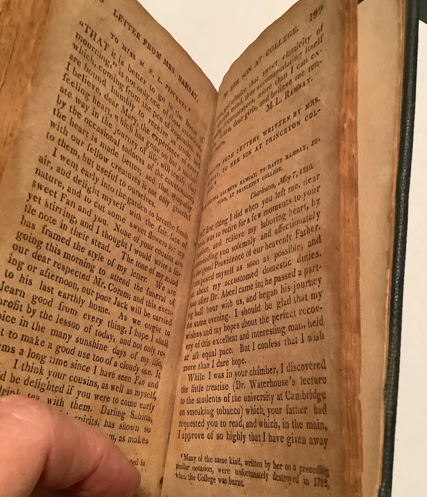 This exceptional and rare book is a 1st edition memoir about the life of Martha Laurens Ramsay, an American historical figure. Its leather binding and original printing in 1811 add to its collector's value. The book tells the story of a woman who lived in Charleston, SC, and made significant contributions to American history. Its special attributes and origin make it a unique addition to any book collection. Book is intact , spine starting to come apart on cover. Pages have discoloration but no ripped or missing pages. First few inside pages are damaged….See photos! Please check out my other listings!