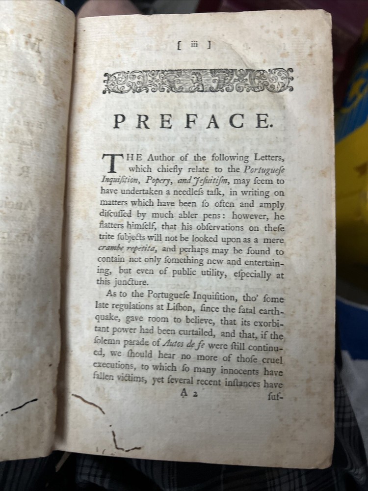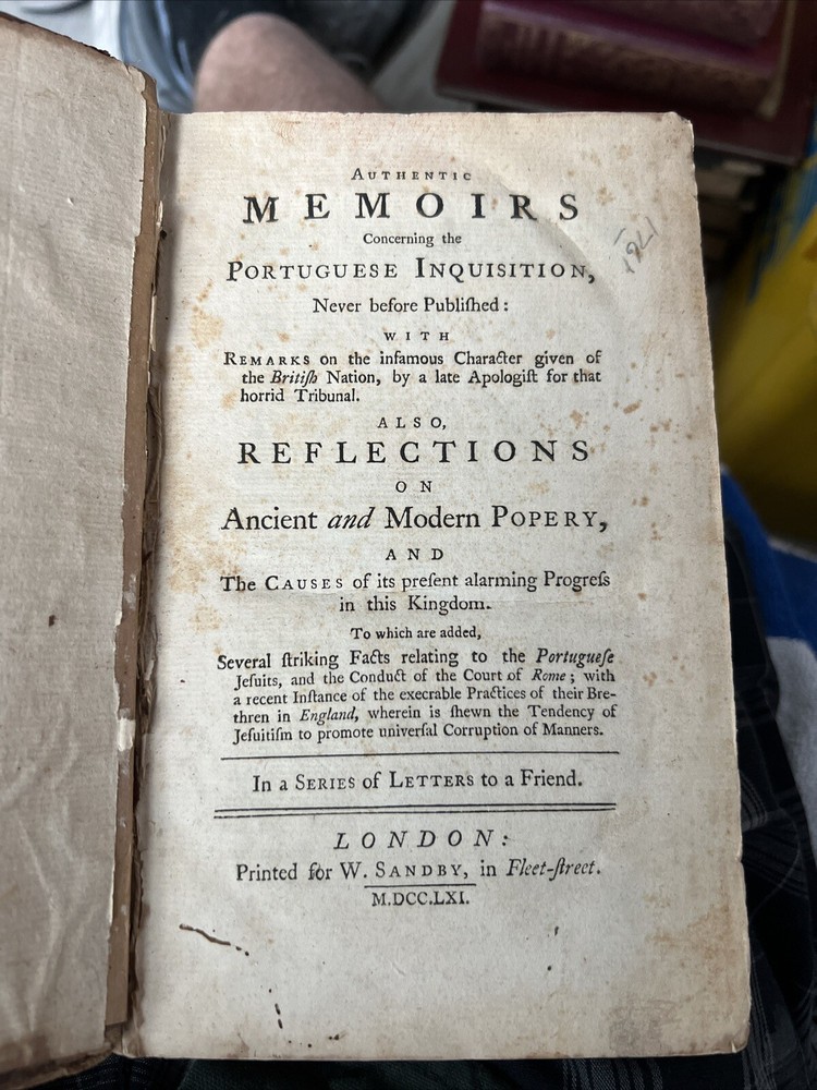 This rare book is a must-have for any collector or enthusiast of Portuguese Inquisition history. The leather bound book from 1761 contains authentic memoirs that provide a unique perspective on the subject. The binding is made of high-quality leather, adding to the durability and longevity of the book. The book is categorized under "Books & Magazines" and "Antiquarian & Collectible" due to its rarity and historical significance. It is a valuable addition to any collection and is sure to be a conversation starter. Get your hands on this one-of-a-kind book today. NOTE: the leather binding is in poor condition and needs restoration d