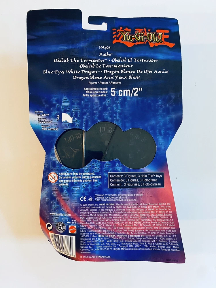 RARE!!! New in Box Yu-Gi-Oh! (3 PACK)- 2005 - Kaiba, Obelisk the Tormentor and Blue-Eyes White Dragon Packaging is in good condition, cardboard may not lay flat, small dents to clear plastic - see photos for details and feel free to reach out with questions prior to purchase. FAST SHIPPING via USPS Priority Mail (1-4 business days) includes tracking and insurance.