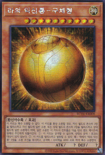 [RC04-KR008] Secret Rare "The Winged Dragon of Ra - Sphere Mode" Korean KONAMI Product Description: [RC04-KR008] Secret Rare "The Winged Dragon of Ra - Sphere Mode" Korean KONAMI Single Card + Sleeve + Top loader (Case) Mint Condition (Made in Korea) 100% Genuine Product of Konami (Korean Version) All singles cards are never used, fresh from the pack. Available for combined shipping (send invoice or partial refund after payment) Store Policy Items will be shipped from South Korea, 1 ~ 3 business days after order. All the items, we are selling, include manufacturers' warranty and do strict inspection & packaging before shipping. We use Korea Post / Rincos International Priority Airmail. All of our shipping provide tracking number. (Standard & Expedited) Standard: 10 ~ 20 business days (+ Tracking Number) Expedited: 5 ~ 10 business days (+ Tracking Number) We do accept all reasonable request and offer.