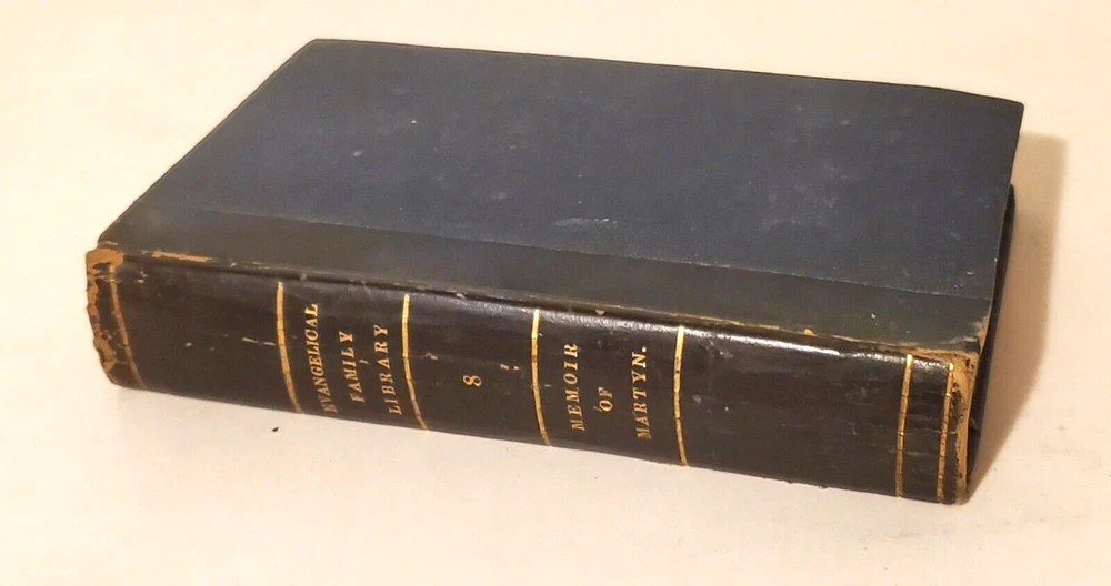EVANGELICAL FAMILY LIBRARY MEMOIR OF HENRY MARTYN EVANGELICAL FAMILY LIBRARY - MEMOIR OF HENRY MARTYN, by John Sargent .... .. Published by American Tract Society, New York, no publication date is given, but the book appears to be from way back in the 1800s …… This is Volume 8 from the larger set … .... DESCRIPTION - Hardback, bound with a leather spine..... A small book, it measures about 6 inches high, and 4 inches across front ...........… CONDITION - The little fella is in good used condition...... The pages are good, with the edges darkened, and with spots, mostly on the early and late pages...And the pages have what I would call a fairly light old book scent......The cover is solid, with general wear and use.......This is a purty good little ol' book.......…..I think you will be pleased with it. . ..... SHIPPIN' AND PAYMENT - 'Course the thrilled winner is gonna hafta pay $4.75 for postage and handlin'.......Multiple purchases save on shippin' ... ... Now while you're here, why don't you give my other auctions a look-see...Why, I 'spect I got a wagon load of mighty good books over yonder in my Book Barn.... Thanks a heap....!!! - - - ol' arkee