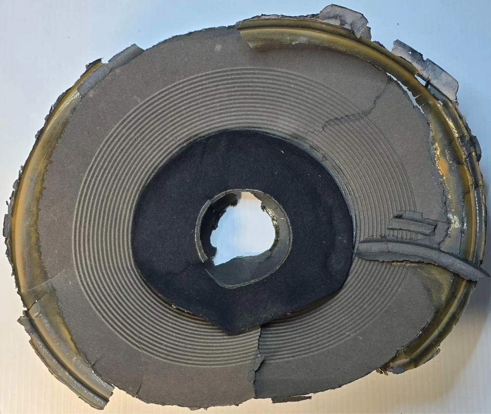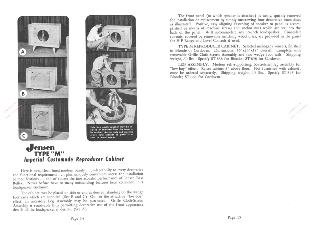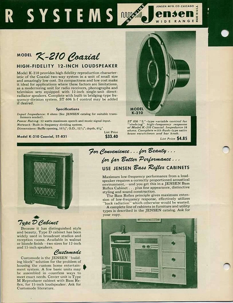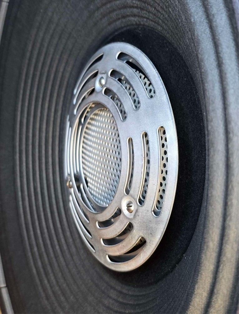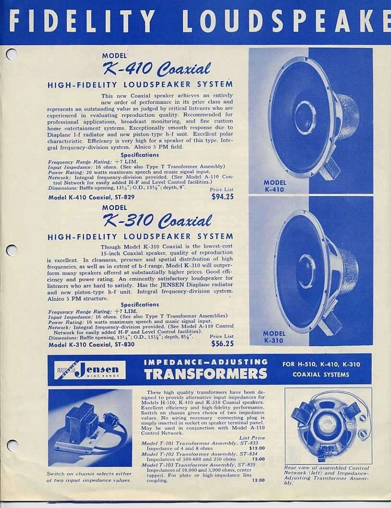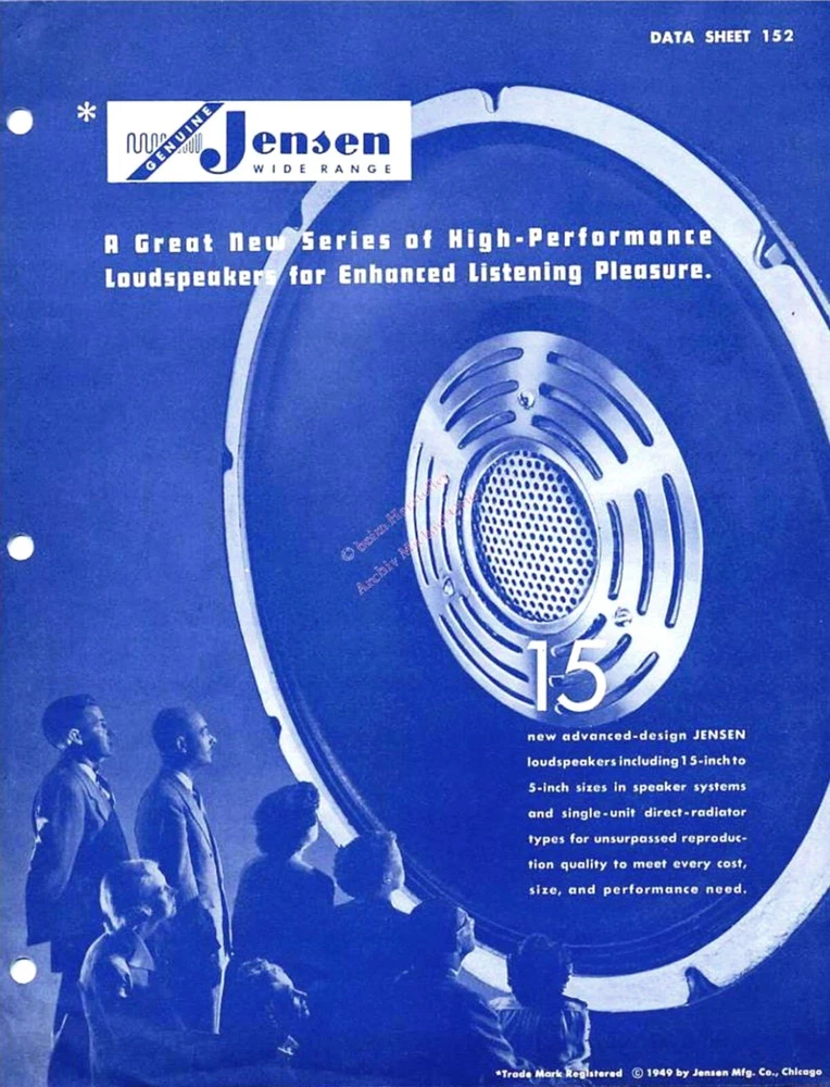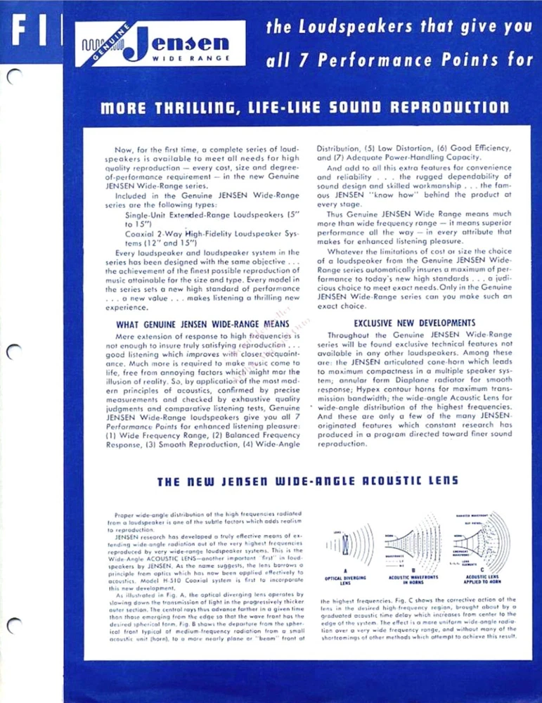 Jensen H510 This listing is for a RESTORED and reconed 1953 Jensen H-510-ST-828 C5412 15" Coaxial of 16 ohms impedance and rated at 25 watts. Costing $135 when released ($1551 when adjusted for inflation in 2024), these coaxials are highly coveted, even today. First released in 1949, Jensen advertised the H-510 as the first-ever speaker to incorporate an acoustic lens for wide dispersion of high frequencies from the horn tweeter. The H-510 is still considered one of the best coaxials Jensen ever made. After our restoration, it certainly was well worth the time and effort! Some of the ads Jensen released in 1949 actually show the acoustic lens plates with an incorrect order! The correct configuration should have the larger diameter lens plate on the front-most position. This allows for a line-of-sight to the first grill when viewing from a side angle. We've listened to the speaker with both configurations and can attest that the proper configuration indeed makes vocals and instruments sound seamless and more real, with a significantly less "pinched"/"nasal" quality. The H-510 has a punchy and faithful sounding 15" all-paper cone woofer and a red colored phenolic dome tweeter, both drivers utilizing Alnico 5 magnets! For those not familiar with the extras that come with these speaker, the basket of the woofer has pre-drilled locations for three trapezoidal shaped plates. From the factory, every H-510 came with a standard speaker terminal plate. Mounted on this terminal plate is a crossover/filter for the tweeter (according to Jensen, the "H" series coaxials has the tweeters filtered at 2000Hz), screw terminals for fastening standard speaker wire (16 ohms impedance here), and two octal-style sockets for optional accessories. For standard 16 ohm connection to an amplifier, use screw terminals "1" (negative) and screw terminal "3" (positive). The two octal-style sockets for two optional accessories (not included nor required) are for the following: 1) a Control Network with two L-pads for greater control with balancing the tweeter level 2) an Impedance-Adjusting Transformer Assembly which presents 4/8 ohm, 500-600/250 ohms, or 10k/5k ohms impedance to the amplifier (depending whether you use model T-101, T-102, or T-103, respectively). You can use this H-510 coaxial, however, without these optional accessories. It's currently ready to play as a standard speaker by using the factory-supplied bypass plugs (installed in each socket). The Control Network bypass plug is indexed to only be inserted one way, so it isn't possible to accidentally insert it incorrectly. The Transformer bypass plug is a standard octal pin configuration, however, so you need to make sure the numbered pins on both the plug and socket match up if you do remove it later for cleaning. This coaxial involves a soft connection between the cone and the horn. There is a felt ring that connects the front of the woofer cone to the back side of the metal horn. There's a lip edge on the rear of the horn specially made for this application. The horn is then threaded into the woofer's magnet assembly. On the back of the woofer magnet is the tweeter, and it mates to the woofer's magnet assembly via a paper gasket and bolts. The Restoration: The H-510 is an advanced speaker in terms of sourcing the right parts, cleaning, prepping, and reconing the speaker. It takes more patience to restore a Jensen coaxial than other speakers. In addition, the felt ring and tweeter gasket are not off-the-shelf parts, so they have to be custom made. We fortunately used our laser to laser-cut a new felt ring and a new fiber gasket, just like the originals! Each step of the way, every part of the speaker was cleaned. There were some fiber washers that deteriorated on some of the lugs on the basket, so we laser-cut some new ones since those, too, aren't obtainable via any modern replacements (at least not the same exact diameter as the originals). The first line of action when reconing a speaker like this is finding the cone and the 2" kraft paper voicecoil - not an easy part to find at all. You usually have to custom make a voicecoil like this, because you won't find a NOS one to replace it, nor will you find a newly manufactured paper/lacquer one a la 1950's style. Luckily, the original voicecoil was still good and usable since it separated easily from the original cracked/torn cone. There was obviously some structural degradation to the collar of the voicecoil (some separated layers of paper that came off with the cone and old adhesive), but that wasn't a problem. To remedy this, we needed to reinforce the top of the voicecoil former for a solid attachment point to the cone throat. We measured out an exact sized strip of a special paper, carefully impregnated it with a specific epoxy for this application, and adhered the new collar to the voicecoil former with huge success. A very thin application of epoxy was also applied to the bottom edge of the voicecoil former, just where the bottom of the windings meet. This ensures that the enamel wire will not become unwound in case the original lacquer did not hold up during use. Ultimately, the geometry of the voicecoil was unaffected during this time of additional handling, and it fortunately remained perfectly round, moving freely in the voicecoil gap without any alignment issues or rubbing! It's rare to be able to preserve an original voicecoil when doing a vintage recone. It's even more extraordinary that such a rare gem like a Jensen H-510 would even allow for us to reuse the original voicecoil! A lot of the character of the original speaker does originate from the voicecoil former material, number of winds (overhung vs underhung), some other secrets, etc, and you normally have to closely study these details to make a replica. Custom winding machine mandrels, the right enamel wire, the right paper, the appropriate epoxy for the power handling, etc... If it did require a custom one, we still would have built