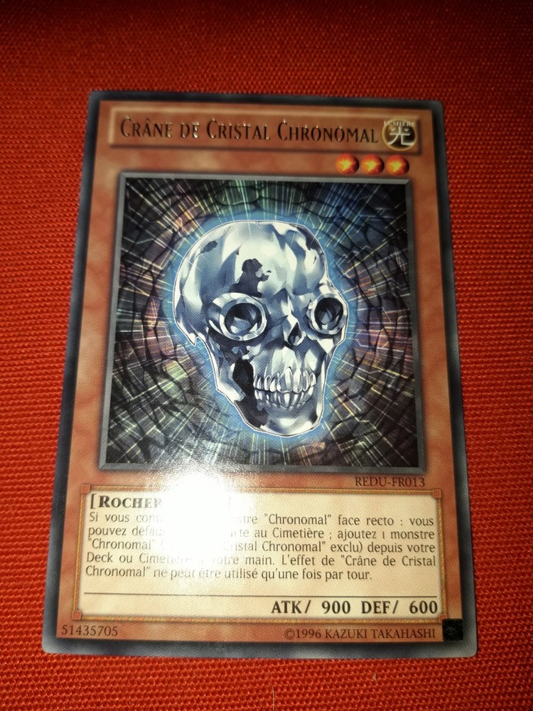 Skull Of Crystal Chronomal REDU-FR013 Rare Card Yu-Gi-Oh! FR Tbe The description of this item has been automatically translated. If you have any questions, please feel free to contact us. "HELLO AND WELCOME TO GAME OCCASION!!! "" Description of the item offered: SEE TITLE, PHOTOS AND FEATURES Shipping costs: several types of services possible, we only offer shipments with tracking for greater peace of mind and an ideal finalization of the transaction. We organize grouped shipments for the purchase of several items. Possible return of the product within 7 days. (item must be returned in the same condition as it was received) Disputes: IF YOU EXPERIENCE ANY PROBLEM AT ANY POINT OF THE TRANSACTION, WE ARE HERE TO ANSWER ALL YOUR QUESTIONS AND FIND SOLUTIONS THAT CAN SATISFY YOU BEST. COMMUNICATION IS THE BASIS OF A SUCCESSFUL TRANSACTION!!! DO NOT PROVIDE A NEGATIVE EVALUATION BEFORE CONTACTING US TO ATTEMPT TO RESOLVE YOUR DISSATISFACTION, WE WILL THANK YOU VERY MUCH. Thank you for your attention, and see you soon!! Â "HELLO AND WELCOME TO GAME OCCASION!!!"" Description of the item offered: SEE TITLE, PHOTOS AND FEATURES several types of services possible, we only offer shipments with tracking for greater peace of mind and an ideal finalization of the transaction. We organize grouped shipments for the purchase of several items. Possible return of the product within 7 days. (item must be returned in the same condition as it was received) IF YOU EXPERIENCE ANY PROBLEM AT ANY POINT OF THE TRANSACTION, WE ARE HERE TO ANSWER ALL YOUR QUESTIONS AND FIND SOLUTIONS THAT CAN SATISFY YOU BEST. COMMUNICATION IS THE BASIS OF A SUCCESSFUL TRANSACTION!!! DO NOT PROVIDE A NEGATIVE EVALUATION BEFORE CONTACTING US TO ATTEMPT TO RESOLVE YOUR DISSATISFACTION, WE WILL THANK YOU VERY MUCH. Thank you for your attention, a Finition Holo Nom de la carte Obelisk, Le tourmenteur Set Yugi Langue Français Type de la carte Monstre Gradée Non Personnage Ego Jeu Yu-Gi-Oh! Rareté Ultra Rare