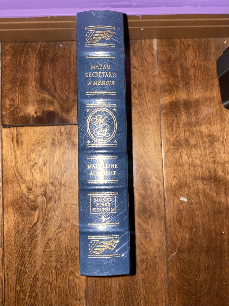 This rare and collectible book is a must-have for any political enthusiast. The signed 1st edition of "Madam Secretary: A Memoir" by Madeleine Albright is in new and sealed condition. The leather-bound book was published by Easton Press in 2003 in Norwalk, Connecticut, making it a true original. The biography and autobiography covers Albright's political career and is a great addition to any collection. With special attributes like being a 1st edition and signed by the author, this book is a unique find. The book is in English and has not been personalized. Don't miss out on the chance to own this piece of history.