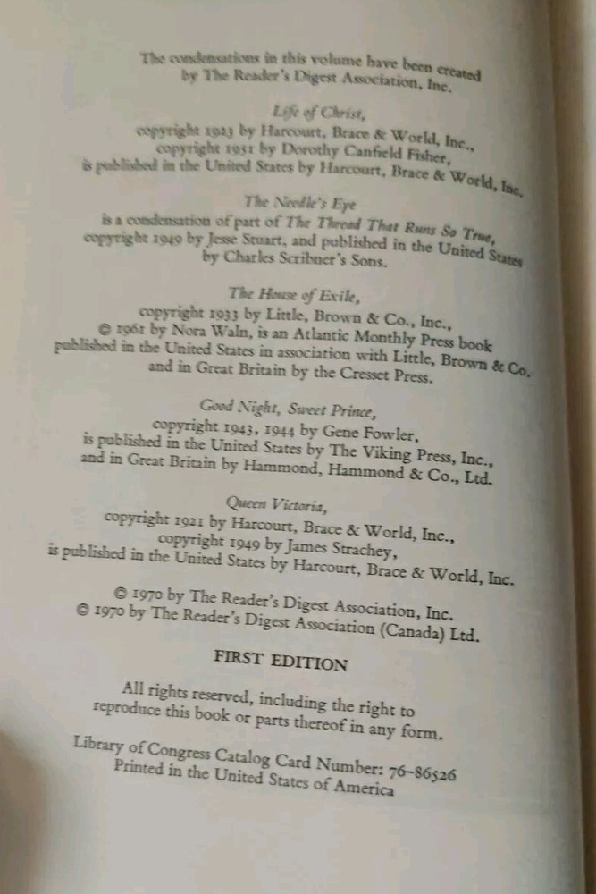 This collection of Reader's Digest Family Treasury of Great Biographies volumes 2, 3, and 4 is a must-have for any book lover. The hardcover format is illustrated with multiple illustrator's work, and the faux leather bound cover adds a touch of elegance to the book. The dust jacket and first edition features make this book a special addition to any collection. The book is a condensed biography book series, with narratives of influential people and true stories that are suitable for young adults, ages 9-12, and adults. The ex libris and personalized options make this book a unique gift for any bookworm. The vintage 1970s era and English language make this book a timeless piece to be treasured for generations to come.