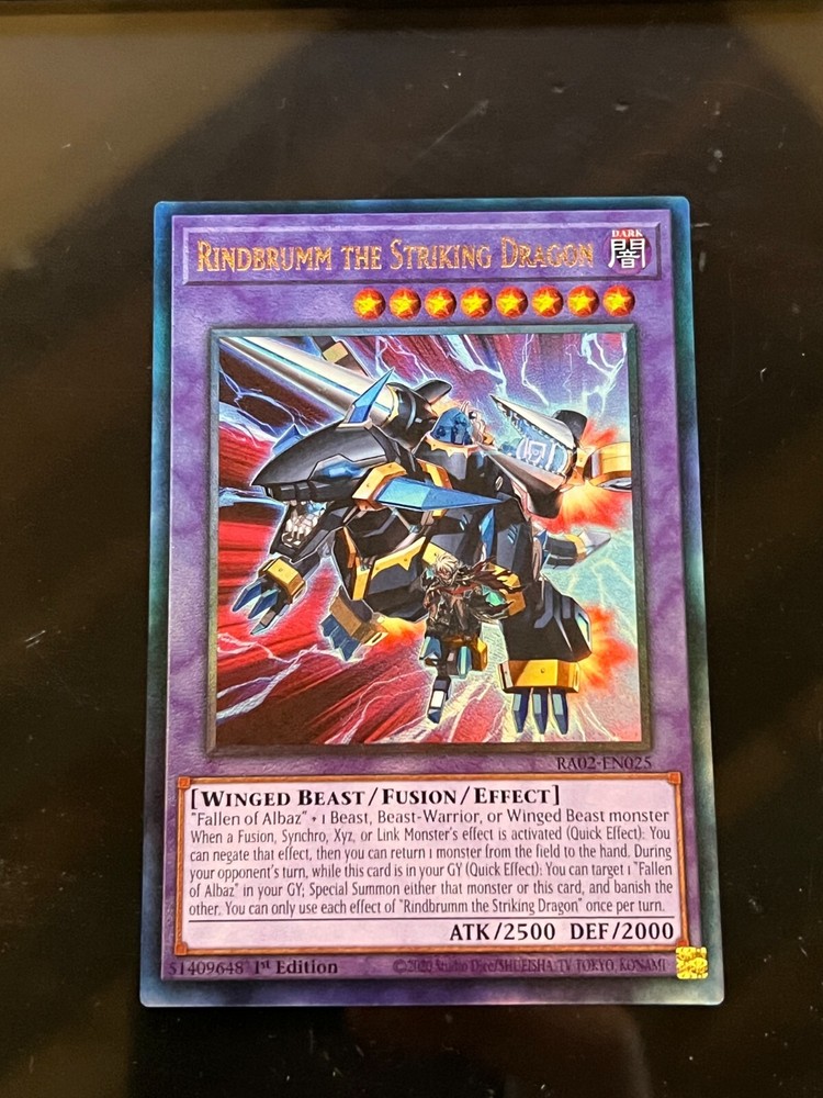 Rindbrumm the Striking Dragon 1st Edition Prismatic Collector's Rare RA02-EN025. Condition is Ungraded. Shipped with USPS Ground Advantage....
