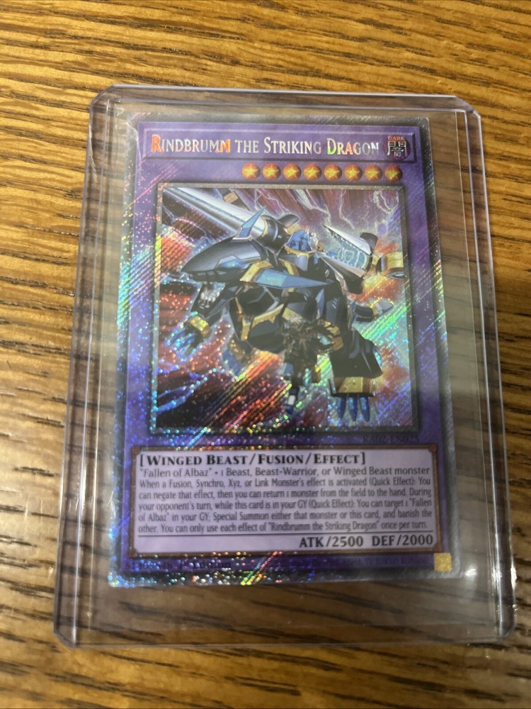 Rindbrumm the Striking Dragon (Platinum Secret Rare) RA02-EN025 25th Anniversary ships same day . Comes in a new protective sleeve and a new hard top loader ....