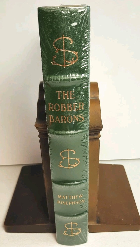 The Robber Barons The Great American Capitalist 1861 - 1901 Sealed From the Easton Press Library of American History Series. Published by The Easton Press 1987 This is a special collector's edition of Matthew Josephson classic book on American finance "The Robber Barons" . It is from the Easton Press Library of American History series. The book is bound in green leather decorated in gilt with four raised bands on the spine and all page edges are in gilt (aeg). Also included is a gold colored silk bookmark. The book is still sealed in the original publishers issued shrink wrap and is in fine, new condition with no bumping at the edges and corners. Who were the robber barons? They were : Jay Cooke, J. Pierpont Morgan, John D. Rockefeller, Commodore Vanderbilt, Andrew Carnegie, Jim Fisk, Jr. Jay Gould, Collis Huntington, Jim Hill, Edward Harriman, Henry Frick, Leland Stanford and some others. The following is taken from the Easton Press Description of this book. In the thirty-five years following the Civil War, the United States experienced an extraordinary economic boom. Despite the devastation wrought by the war, the predominantly agricultural U.S. suddenly emerged as a powerful industrial nation. This enormous change was largely the work of a very small group of ambitious men. These were the brilliantly daring capitalists - Morgan, Rockefeller, Carnegie, Frick, Gould, Vanderbilt, and others - whose names have become legendary. They built railroads, financial institutions, steel mills, shipping lines and factories at a dizzying pace. They stopped at nothing to achieve their goals. And in doing so, they pushed and pulled the agrarian United States into the industrial age. Admired for their stunning successes, these "Robber Barons" were also widely hated. Hard-driven to the point of ruthlessness, their ethics were compared to those of pirates. Like feudal lords of old, the "Robber Barons" plundered without conscience. They had nothing but disdain for "lesser" men who criticized their methods or their morals. They were brash, bold, and colorful. They intrigued each other, warred with each other, and formed and broke alliances without a second thought. Whether manipulating the stock market or duping their rivals, profit justified any action. But while these extraordinary men were creating their vast empires and enormous personal fortunes, they were also rebuilding the face of America. Rail lines stretched out where only empty prairies had been before. Steel mills and other factories grew whole cities around them. American business boomed, and with it, the whole country. As the distinguished biographer Matthew Josephson recounts in his classic work, The Robber Barons, these were men of vision. They shared a view of America's possibilities that few others saw so clearly. They envisioned what America could be and made that future happen. A great book for anyone who is interested in collecting books about the history of American Finance. Don't miss out, add this great book to your collection today! And check out my other listings for more interesting books and ephemera. Pabookman Books Postcards Ephemera