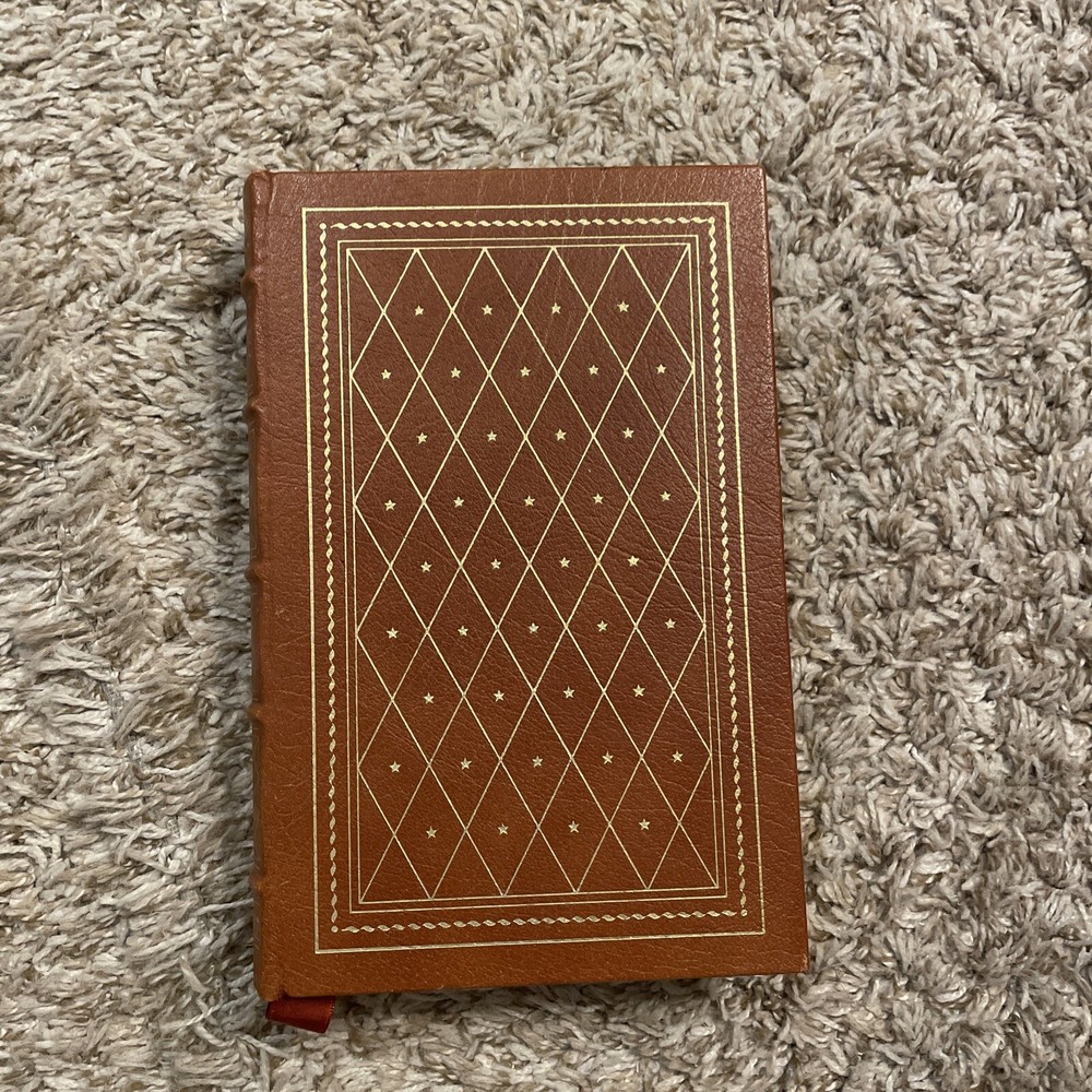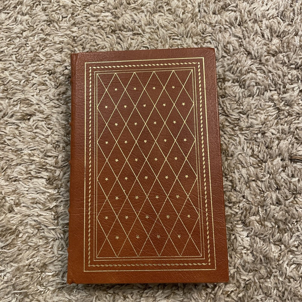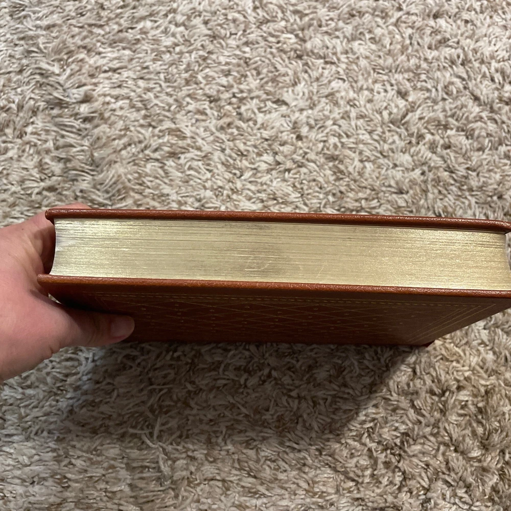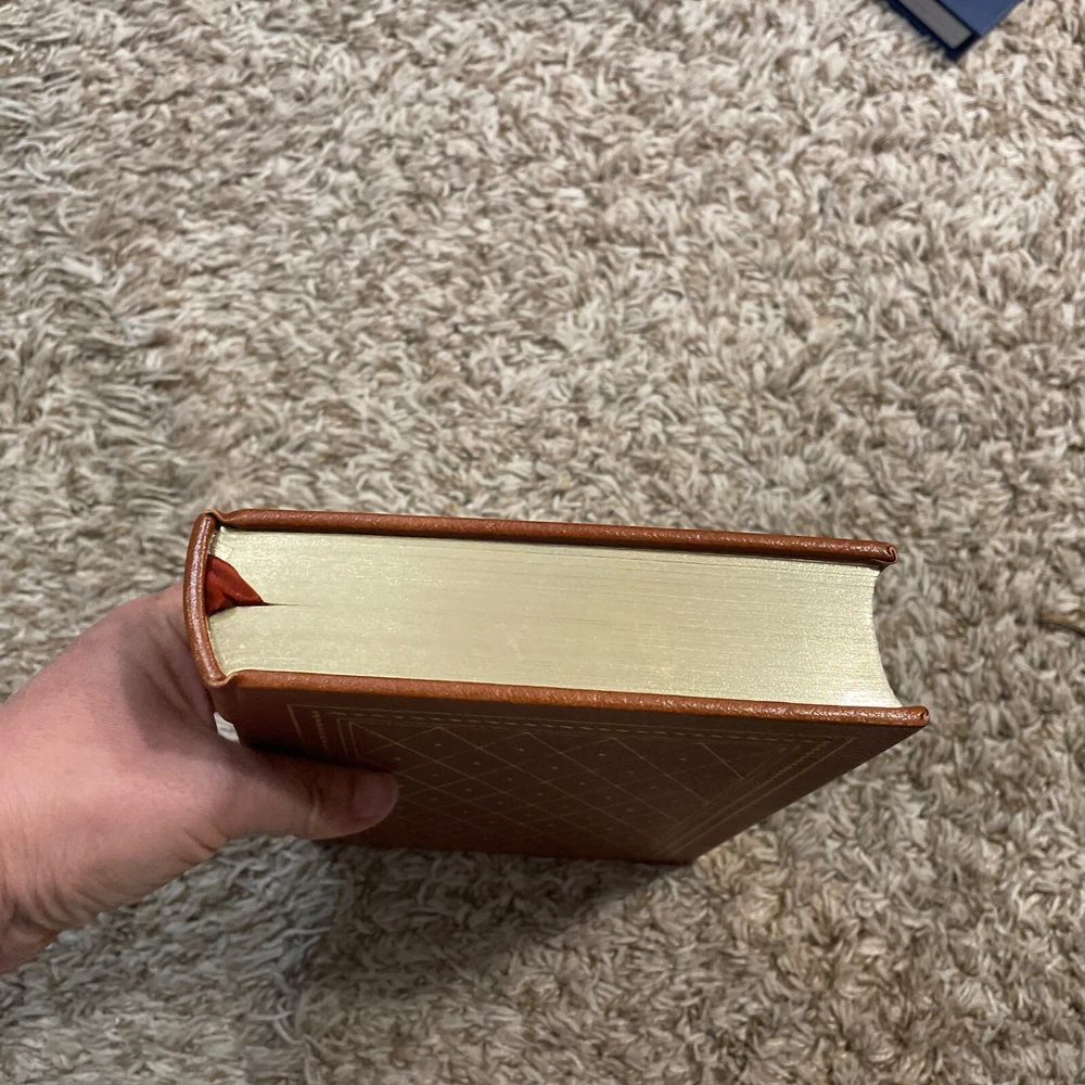 Please review each picture carefully as they are true reflection of this book’s condition. Binding is strong and tight. Pages are clean with no stains. The book’s fore-edge has a minor rubbing (please see last two pictures). The top and bottom edges are in near to perfect condition. The back of the front cover has a bookplate size discoloring because there was a bookplate on it before. The bookplate was removed. Please see pictures.