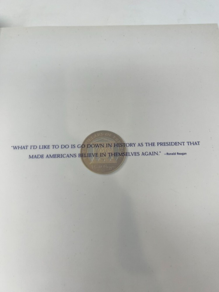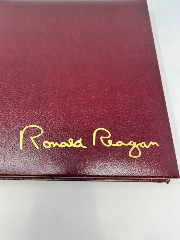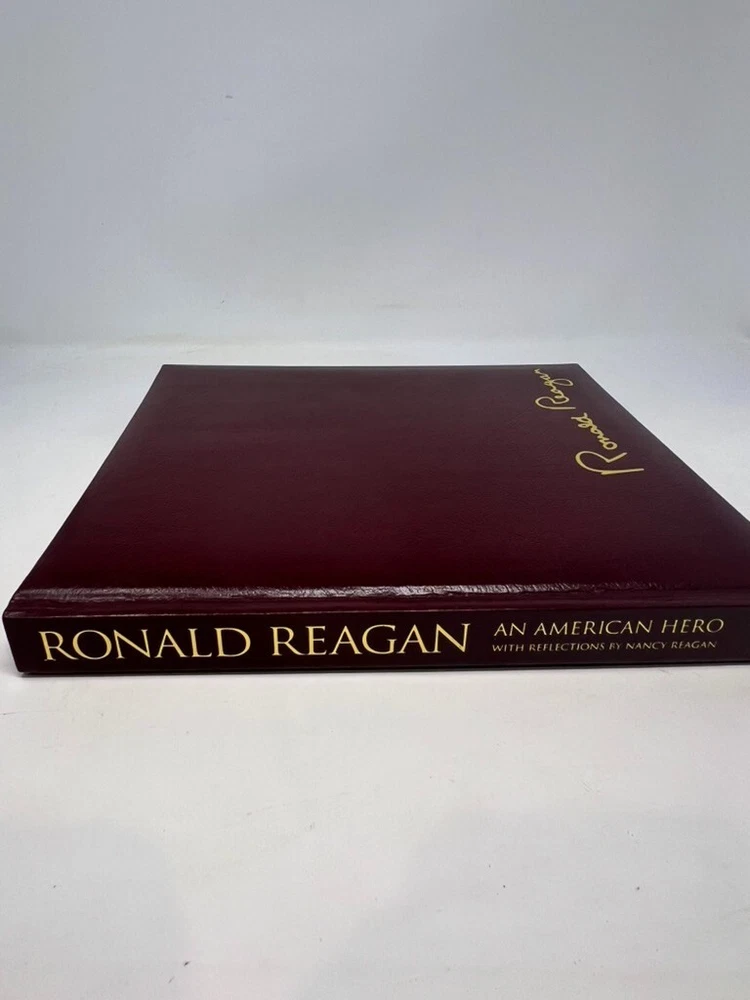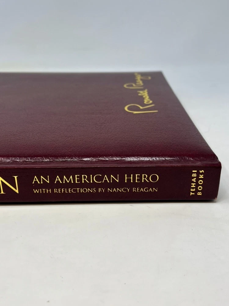 The Ronald Reagan: An American Hero leather hardcover book is a historical biography, focusing on the life and values of the 40th President of the United States. Published by Tehabi Books in 2000 as a first edition, this memoir includes illustrations and spans 271 pages, making it a comprehensive look at the legacy of Ronald Reagan. With a personalized touch and a theme centered around presidents and heads of state, this book is a must-read for adults interested in American history and political figures. Sold as shown.