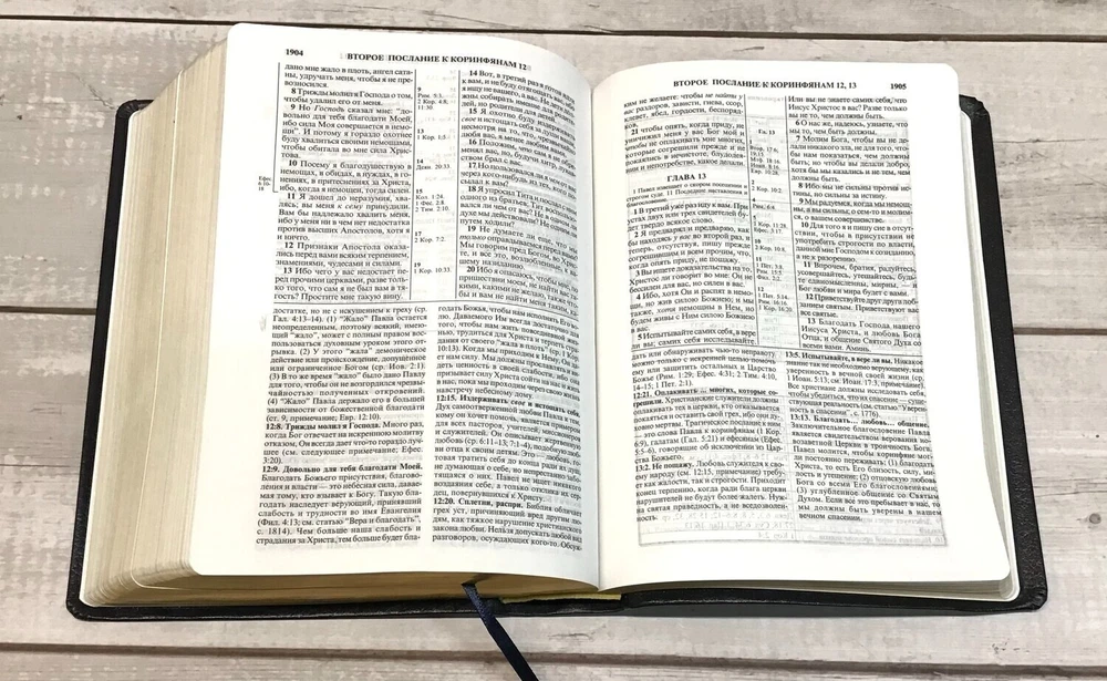 Библия с комментариями. «Полноценная жизнь» (кожаный переплет темно синий, золотой обрез) Новое четвертое издание популярной Библии с комментариями "Полноценная жизнь" включает синодальный текст канонической Библии. Постраничные комментарии с обширными ссылками на текст Священного Писания помогут в углубленном изучении Библии. Наиболее важные темы подробно обсуждаются в статьях. Каждой книге Библии предшествует краткое содержание книги, исторические условия написания книги, информация об авторе, обстоятельствах и дате написания, указание изначальной цели написания книги, краткое обобщение всего содержания книги, перечень характерных черт, особенностей и основных акцентов книги, предполагаемый план чтения, позволяющий прочитать всю Библию за 2 года. По всей Библии расположены различные таблицы, схемы и карты. Книга содержит тематический и предметныйуказатели, тематические символы-обозначения, план чтения Библии и симфонию. Полноценная жизнь: Библия с комментариями Как пользоваться Библией с комментариями ВЕТХИЙ ЗАВЕТ Бытие Исход Левит Числа Второзаконие Книга Иисуса Навина Книга Судей Израилевых Книга Руфь Первая книга Царств Вторая книга Царств Третья книга Царств Четвёртая книга Царств Первая книга Паралипоменон Вторая книга Паралипоменон Книга Ездры Книга Неемии Книга Есфирь Книга Иова Псалтирь Книга Притчей Соломоновых Книга Екклесиаста, или Проповедника Книга Песни Песней Соломона Книга Пророка Исайи Книга Пророка Иеремии Книга Плач Иеремии Книга Пророка Иезекииля Книга Пророка Даниила Книга Пророка Осии Книга Пророка Иоиля Книга Пророка Амоса Книга Пророка Авдия Книга Пророка Ионы Книга Пророка Михея Книга Пророка Наума Книга Пророка Аввакума Книга Пророка Софонии Книга Пророка Аггея Книга Пророка Захарии Книга Пророка Малахии НОВЫЙ ЗАВЕТ Евангелие от Матфея Евангелие от Марка Евангелие от Луки Евангелие от Иоанна Деяния апостолов Послание Иакова Первое послание Петра Второе послание Петра Первое послание Иоанна Второе послание Иоанна Третье послание Иоанна Послание Иуды Послание к Римлянам Первое послание к Коринфянам Второе послание к Коринфянам Послание к Галатам Послание к Ефесянам Послание к Филиппийцам Послание к Колоссянам Первое послание к Фессалоникийцам Второе послание к Фессалоникийцам Первое послание к Тимофею Второе послание к Тимофею Послание к Титу Послание к Филимону Послание к Евреям Откровение