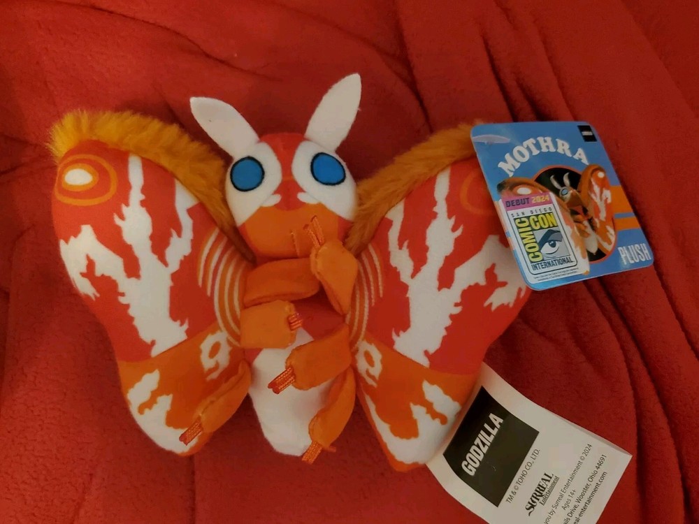 I have for sale an SDCC 2024 UCC Distributing Godzilla Mothra 6″ Neon Orange Blacklight Plush Sold Out Limited. Please see all pictures and please ask all questions before purchase. Thanks and Good Luck!!!