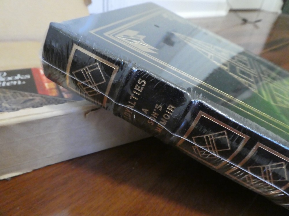 This is a VERY RARE leatherbound SIGNED and SEALED first edition of Carl Bernstein's Loyalties: A Son's Memoirs released by Easton Press and the Danbury Mint. This is part of the 100 Greatest Books Ever Written set. It is leatherbound with 22kt gold accent and gilded pages. This is NEW, STILL SEALED and in the ORIGINAL cardboard mailer with the original leaflet for the collection. As you can see from the photos, the cardboard mailer shows significant wear from being in storage for over 30 years. Please note that because of the condition of the mailer, it is essentially being included for free. If you have any questions or would like any additional details, please ask and I'll be happy to provide them.