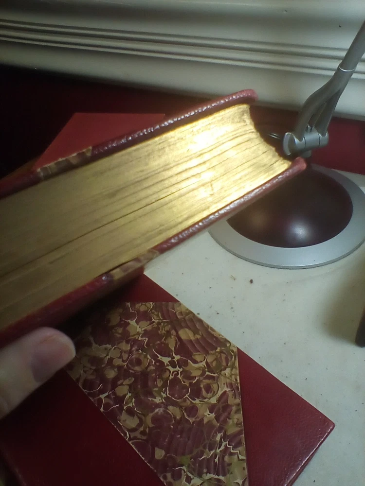 Numbered edition 393 of 1000 2 vol. Gorgeous red leather over marble boards, Pages are clean.