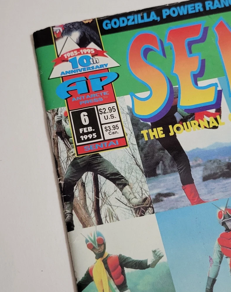 This is a 1995 copy of Antarctic Press Sentai #6, a low print early Power Rangers issue also featuring Godzilla. This book comes in 3.5 (Very Good-) condition. This is a below-average book with several major defects or an accumulation of multiple moderate defects. The main defects are the countless amount of dings up and down the front and back spine. The back cover is bent, causing folding at the top, making it difficult for this book to sit flat. The staples are both firmly attached, and this book is complete. See pics above for more details. This book will come bagged, boarded, in reinforced cardboard, shipped in a protective bubble mailer, and insured.