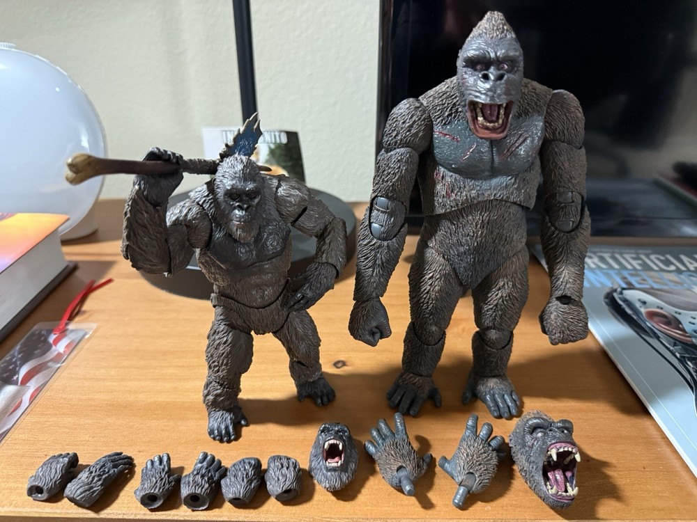 Hello everyone! Up for auction are two very nice quality Kong action figures from both Monsterarts and NECA. They are in fantastic condition and come with all of their respective accessories. No loose joints! Pure solidness! They come from a smoke free home and were only used for display. The Monsterarts Kong figure is from the 2021 release I only ship to the states, sorry my international friends