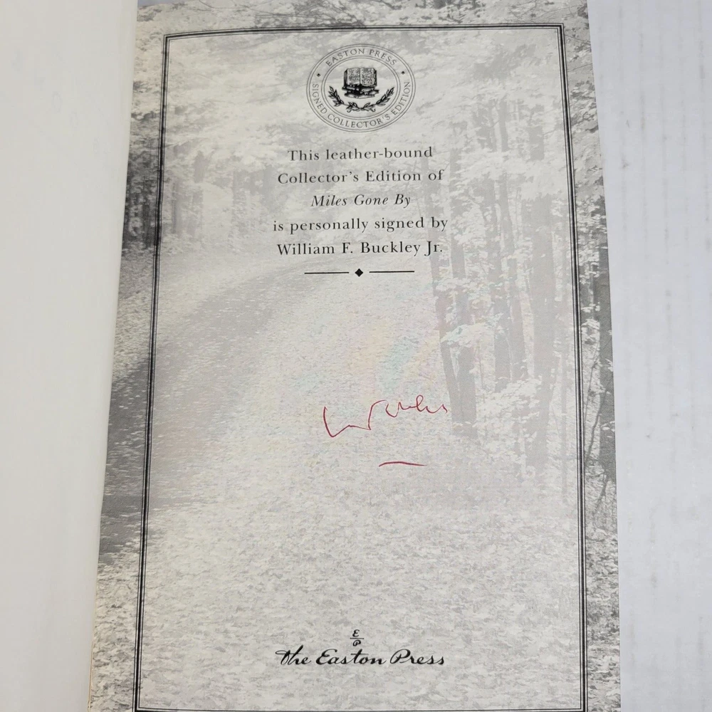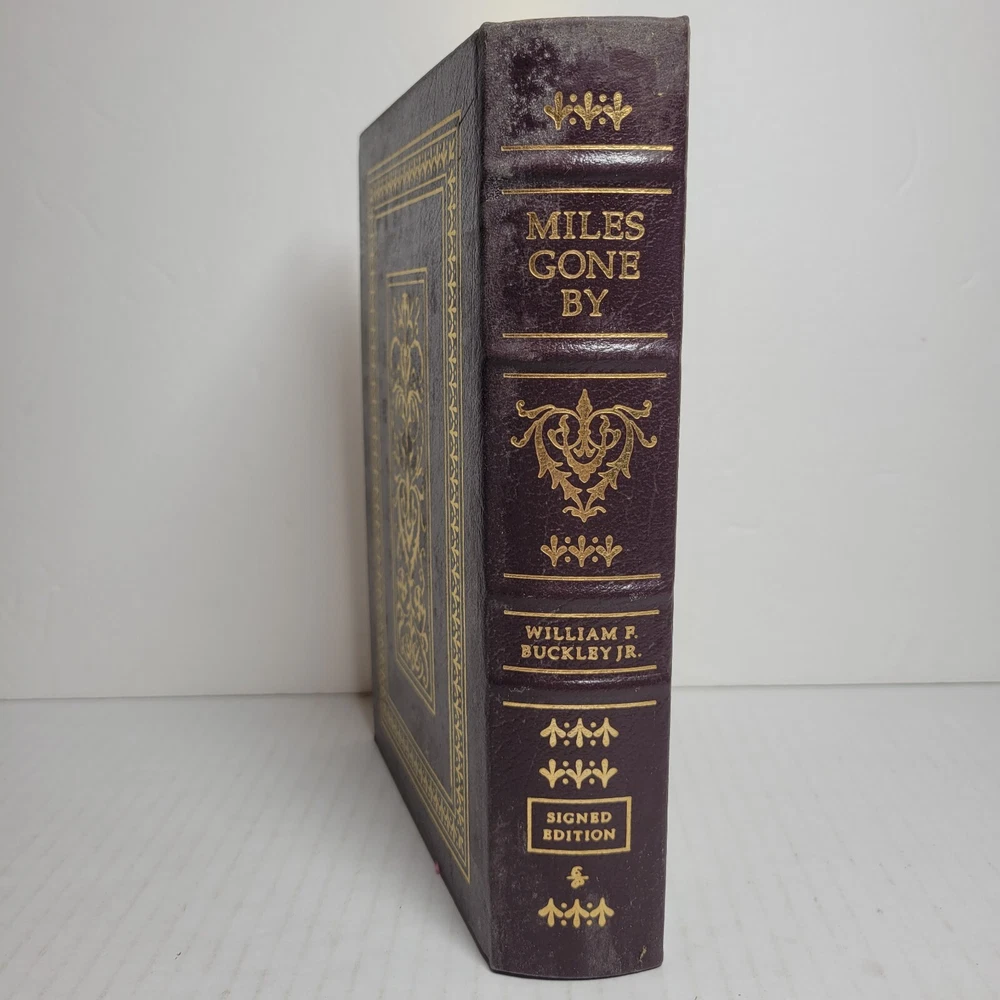 This listing is for a signed Easton Press edition of Miles Gone By by William F Buckley Jr. Book was stored in a non-climate controlled room for a few months by the previous owner and has developed some signs of mold issues on the leather cover. Will need professionally cleaned. Book was immediately bagged and stored separately from other items I have listed. Includes the COA. Cover may have some minor wear, please view all pictures.