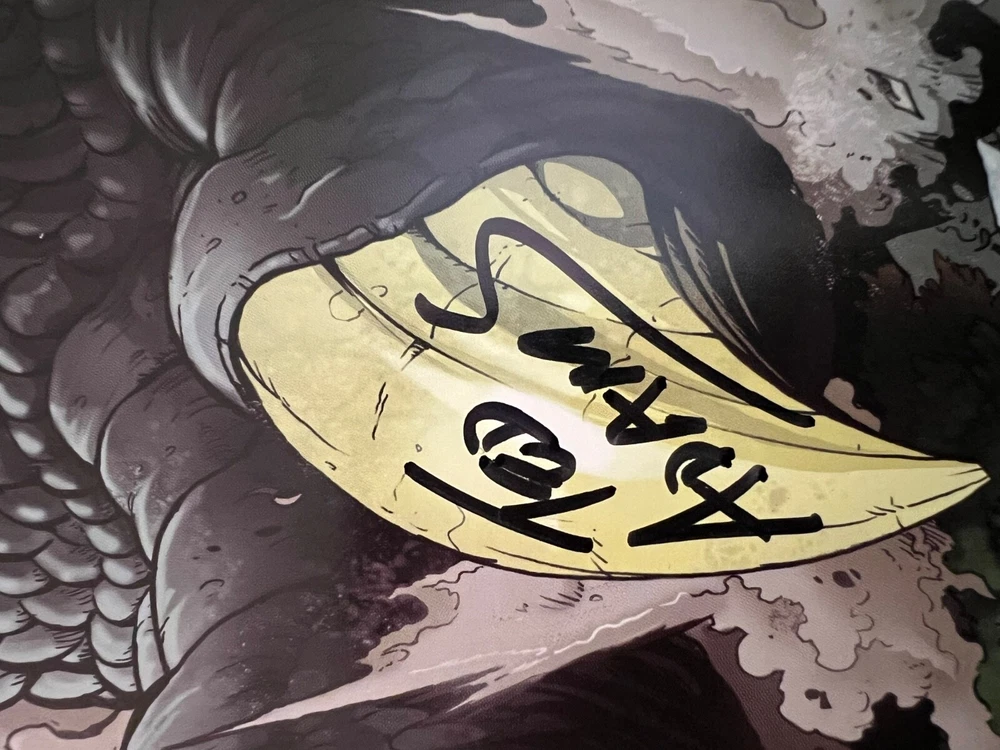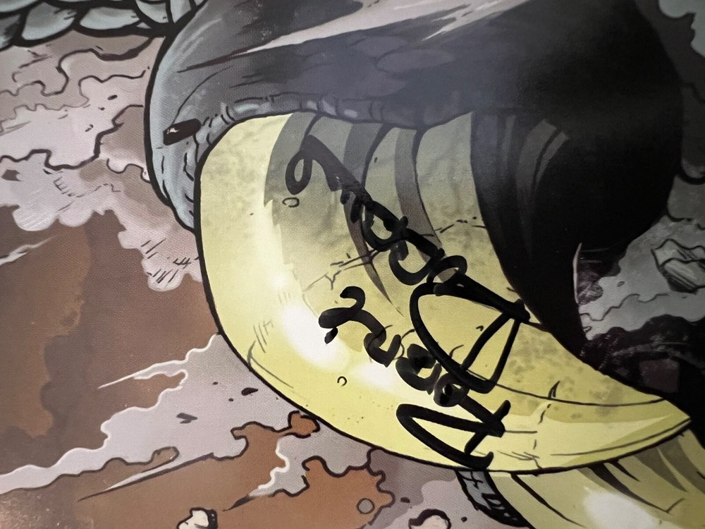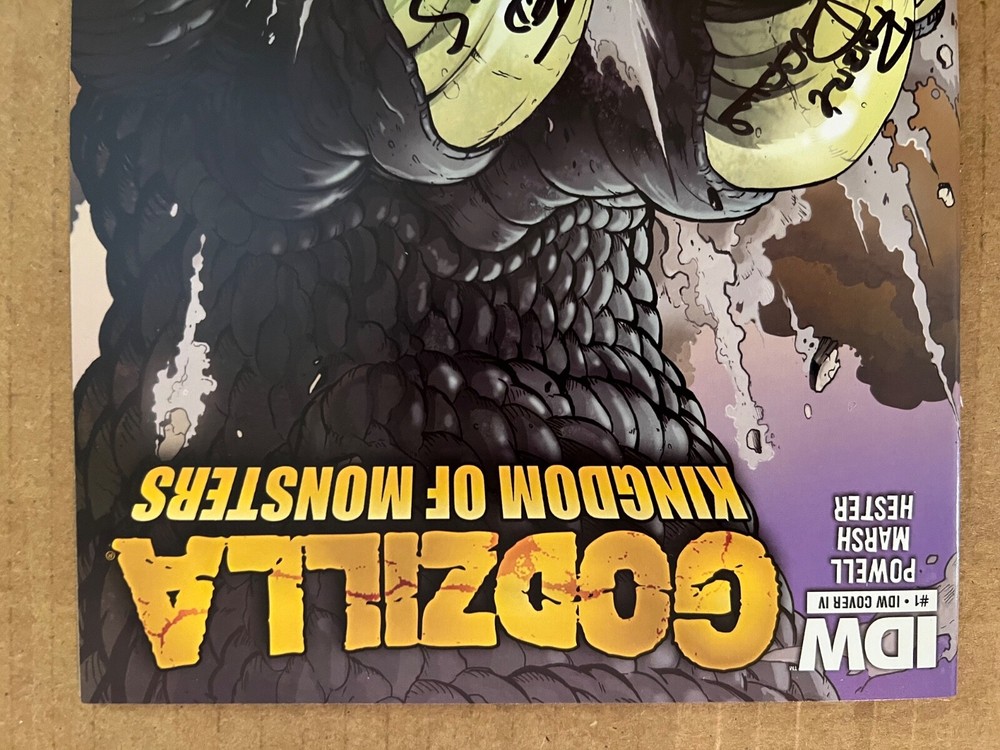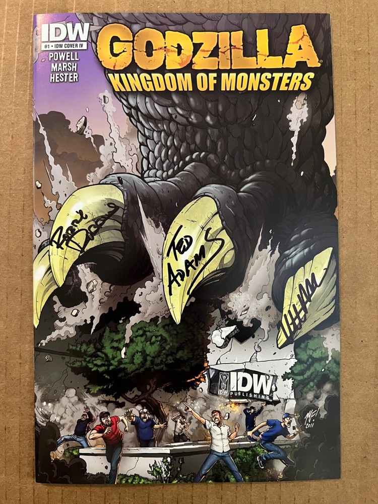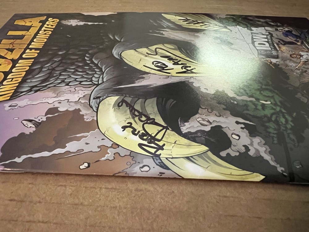 Dive into the prehistoric chaos of "Godzilla: Kingdom of Monsters #1," a thrilling entry from IDW Publishing. Featuring the remarkable art of Matt Frank and a vertiginous IDW Publishing Staff Cover #4 of 4, this issue is a true collector's gem. Embellished with signatures from renowned industry figures including Ted Adams, Robbie Robins, and a third, as yet, unknown signature, it's a testament to the Modern Age of comics. This 2011 science fiction saga, graded at a 8.5 Very Fine+, captures the essence of the King of Monsters in vivid English text. As a cornerstone of US Comics tradition, it stands as an essential piece for enthusiasts and fans of the genre. With its rich history and the prestige of IDW's publishing, this comic promises to be a highlight in any collection.