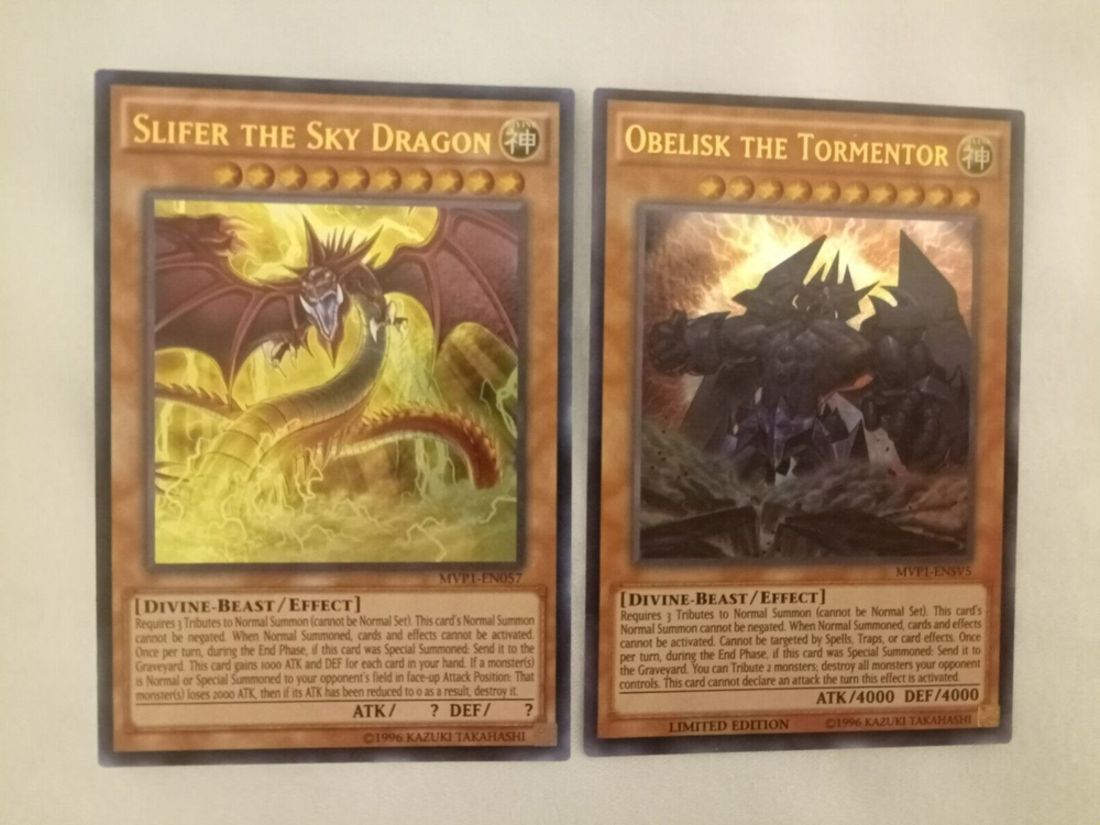 SLIFER THE SKY DRAGON OBELISK THE TORMENTOR THUNDERFORCE ATTACK FIST OF FATE YGO AS SHOWN IN PICTURES: ALL CARDS ARE IN NEAR MINT, GREAT CONDITION! SLIFER THE SKY DRAGON (ULTRA RARE) OBELISK THE TORMENTOR (ULTRA RARE) THUNDERFORCE ATTACK (ULTRA RARE) FIST OF FATE (ULTRA RARE) ALL orders from my store will be shipped in a small envelope WITH tracking shipped with an eBay standard envelope tracking label. See shipping price! Handling time is 2 days, and then the item will be shipped immediately!