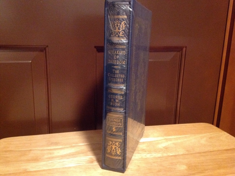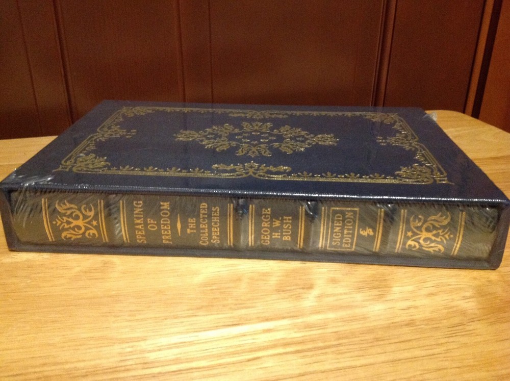 PRESIDENT GEORGE H.W. BUSH This is a Brand New (Still Sealed) Easton Press Signed Leather Edition Book with Slip Case. The Book is Signed by President George H.W. Bush and is Titled: "Speaking Of Freedom - The Collected Speeches". Easton Press and Franklin Library Books are Bound in Genuine Leather and Feature: *Distinctive Cover Designs, *Hubbed Spines, Accented in Real 22KT Gold, *Silk Moire Endleaves, *Gilded Page Edges, *Permanent Satin Ribbon Page Marker, *Smyth-Sewn Pages For Strength and Durability, *Long Lasting High Quality Acid-Neutral Paper, *Beautifully Illustrated. Check Out Our Ebay Store *Please visit our Ebay Store SuperStarsGallery or just click on "See other items" above in this listing. Where you can view our entire inventory of over 1000 unique & one-of-a-kind In-Person obtained Signed items - JSA, PSA/DNA & BAS/Beckett Authenticated along with Limited Edition Autographed items. **YOU WON'T BE DISAPPOINTED** **New Items listed almost daily so check back often or just click Save Seller below in this listing to be the first to see the newest items. Shipping FAST ONE BUSINESS DAY SHIPPING *All items are shipped via the United States Postal Service (USPS) within **One business day of purchase**. *Individual shipping fees are posted in the listing. *Domestic and International Shipping: All items are shipped First Class Mail unless otherwise stated in the listing. Packaging PHOTO(S) - All our photos are placed into individual protective sleeves and packaged between two thick custom cut pieces of cardboard. Photo(s) are then placed into an envelope that is boldly marked "PHOTOS - DO NOT BEND". MEMORABILIA - First all items are carefully placed into a protective sleeve or bubble wrap. Items are then boxed using generous amounts of padding material (packing popcorn or something similar). The box is then boldly marked "FRAGILE". Payment Method We accept all major forms of credit cards through PayPal. Please let us know if you are using other forms of payment - So we can have your item carefully packaged & ready to ship. Return Policy Any item can be returned for a full refund for any reason within 30 days of purchase. Additionally, all of our In-Person Signed items are Guaranteed Authentic for life. We guarantee that they will pass any examination by all major authentication service, such as GAI, BAS/Beckett, PSA/DNA or JSA , etc.