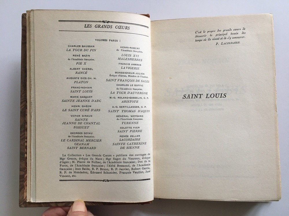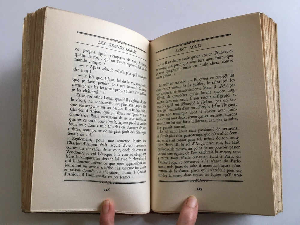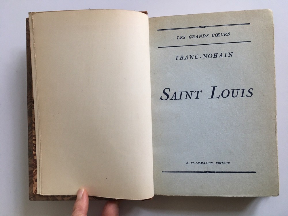 Saint Louis by Franc-Nohain. Les Grands Coeurs collection by Flammarion editions 1932. Ornated leather back, golden head slice. 19.5 x 13 cm. preserved original cover. 227 pp. In very good condition: minor scratches in cor, cut, corners and hinges in perfect condition; smooth slice; Solid, clear together. Saint Louis by Franc-Nohain. Les Grands Coeurs collection by Flammarion editions 1932. Ornated leather back, golden head slice. 19.5 x 13 cm. preserved original cover. 227 pp. In very good condition: minor scratches in cor, cut, corners and hinges in perfect condition; smooth slice; Solid, clear together.