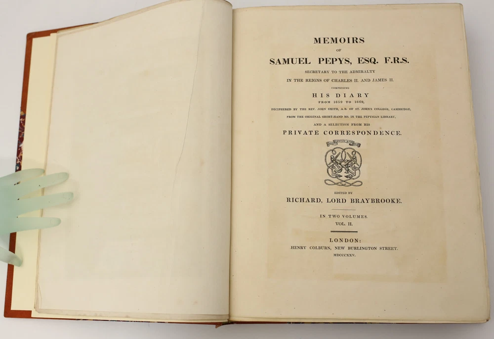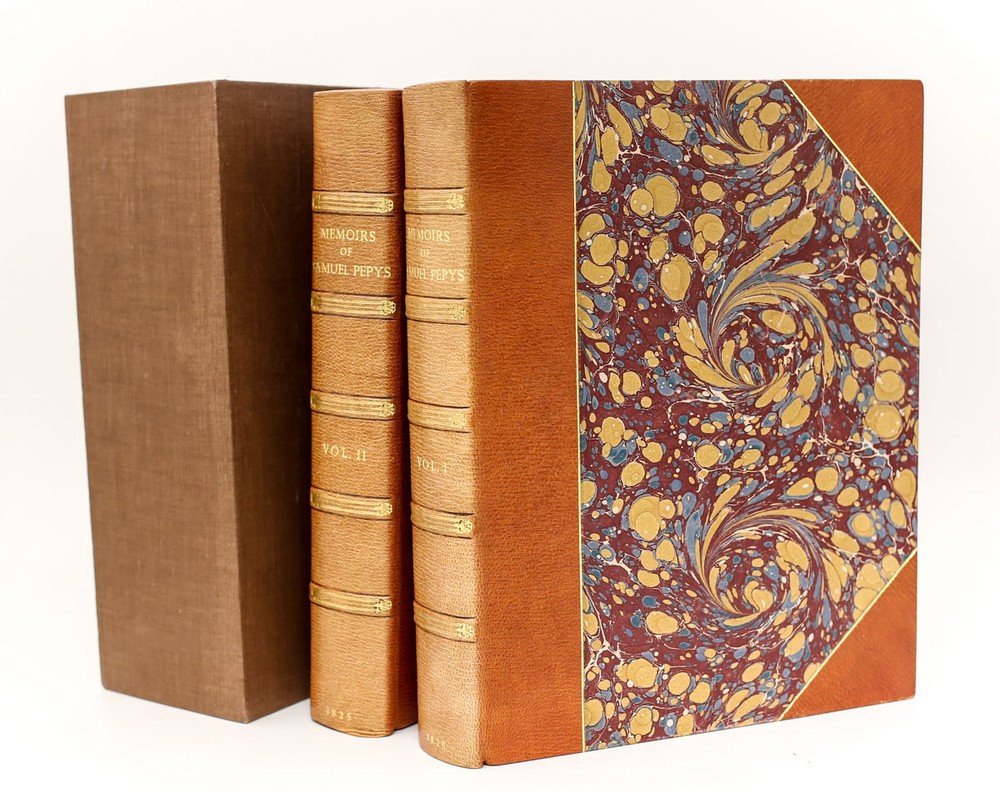 Item Description: Pepys, Samuel 'Memoirs of Samuel Pepys, ESQ. F.R.S. Secretary to the Admiralty, Vol 1 & 2, Henry Colburn, London, 1825. 1st Edition Hardback, 3/4 leather and marbled cloth boards 5 raised spines w/ gold lettering. Uncut pages, rare. Vol 1 498pp, Vol 2- 294pp. Total Weight 14 pounds. SCH 292-297 Approx. Measurements: ea 9.75"x12.75"x2" thick Condition: Very Good Condition. Sunned spines, lightly rubbed edges - rebacked? Scattered foxing to pages, some dust related soiling to edges. Shelf wear to slipcase. We have a fine selection of quality items for sale at Amphora Art & Antiques. International as well as domestic customers are welcome - please contact us with questions regarding shipping or listings, and we will assist you quickly. All items can be inspected in-person or are available for pickup from our large Wilmington, CA warehouse with no additional fee or charge. The authenticity of all items listed are guaranteed to be as represented - all efforts are taken to ensure accurate and descriptive condition reports and photographs. We reserve the right to use another shipping carrier other than what is listed to ensure your purchase arrives safely. Fedex cannot ship to a P.O. Box. Please contact us before or upon purchase if you have a preferred shipping carrier.