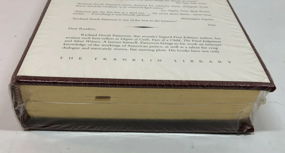 Sealed Richard North Patterson’s No Safe Place The Signed First Edition Society The Franklin Library This limited first edition has been privately printed and personally signed by the author exclusively for members of The Signed First Edition Society Sealed in original seal. Return Policy: Items marked "Free Returns" may be returned within 30 days of receipt. Returned items must be unused, unopened, returned in original packaging with all labels, parts and pieces as received. Please see eBay's policy on returns. Seller will provide a return label. Items marked "Buyer Pays Returns" may be returned within 30 days at buyer's expense. Returned items must be unused, unopened, returned in original packaging with all labels, parts and pieces as received.