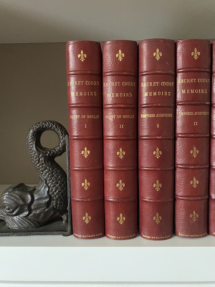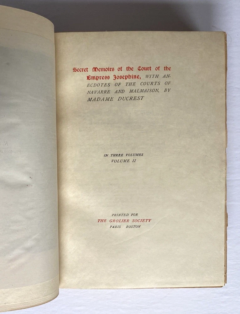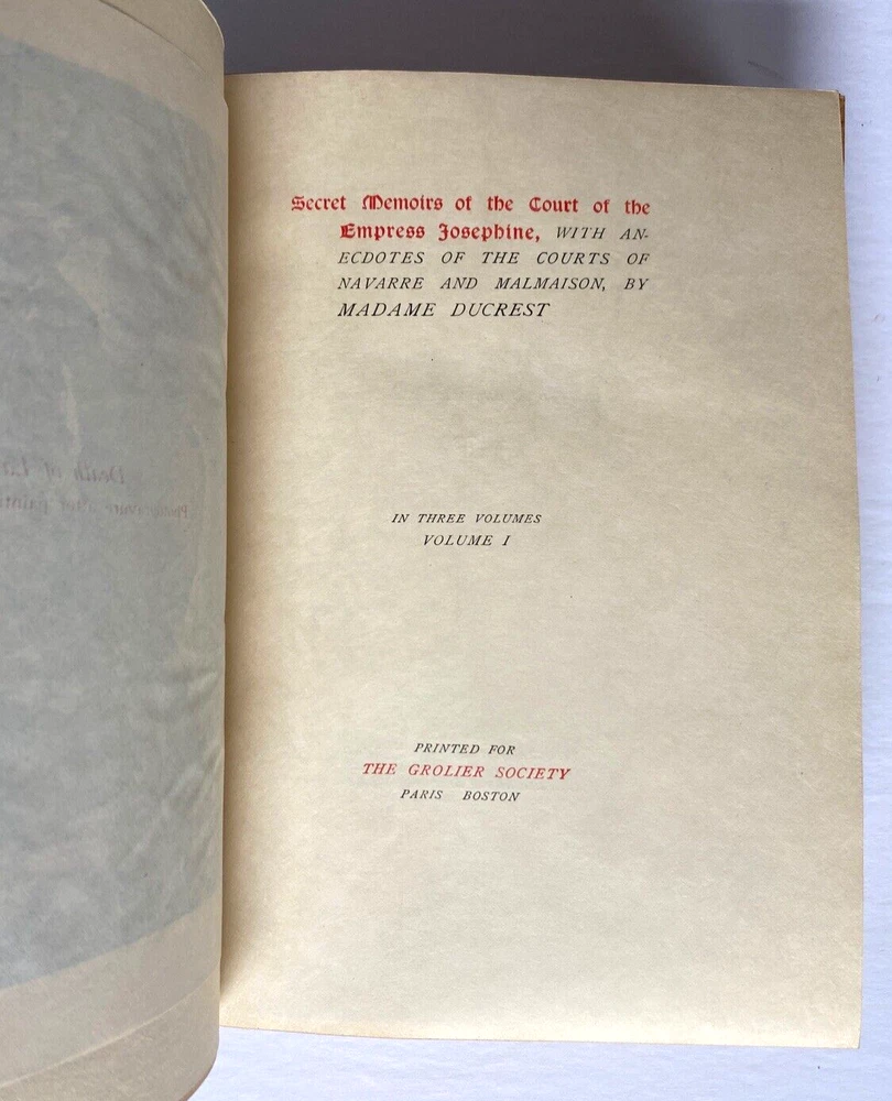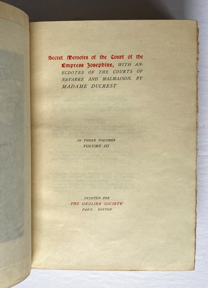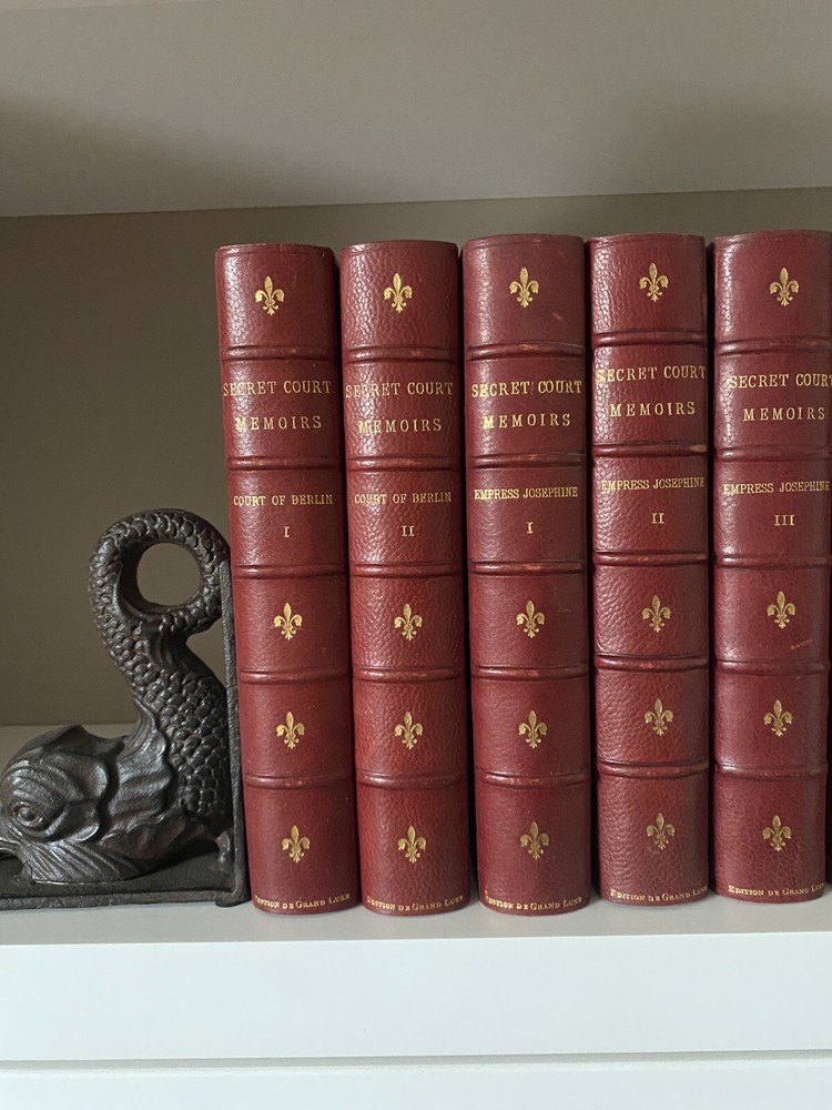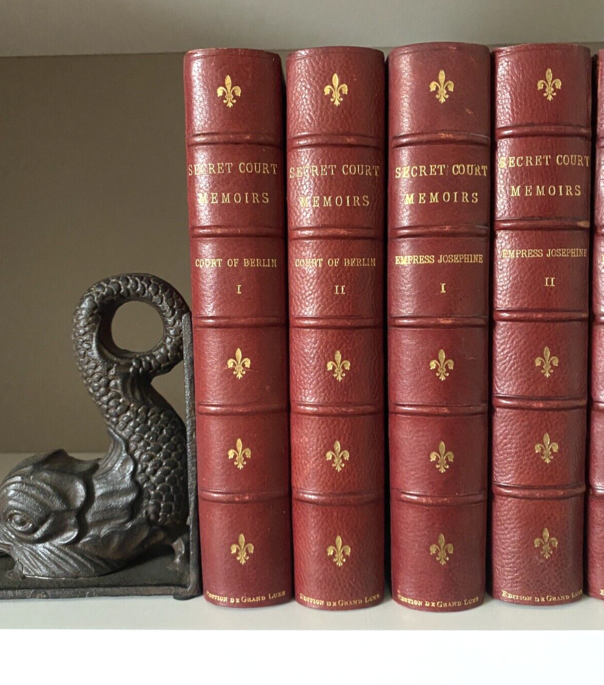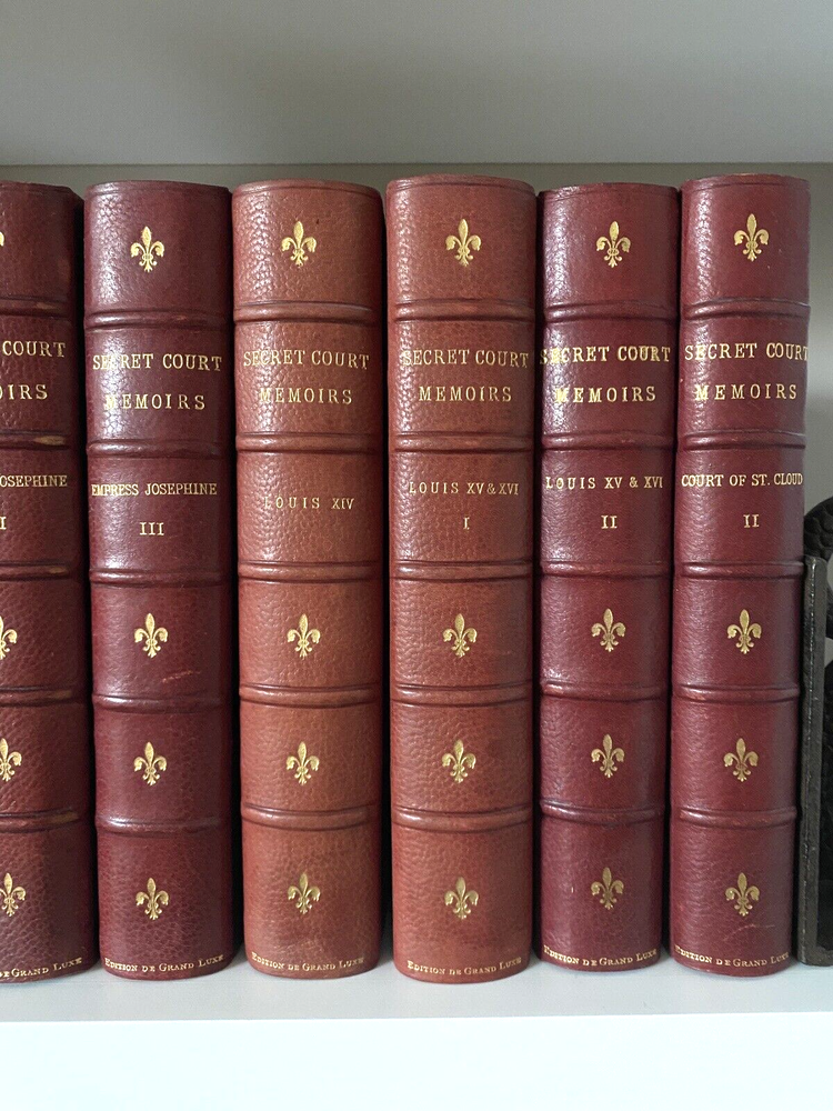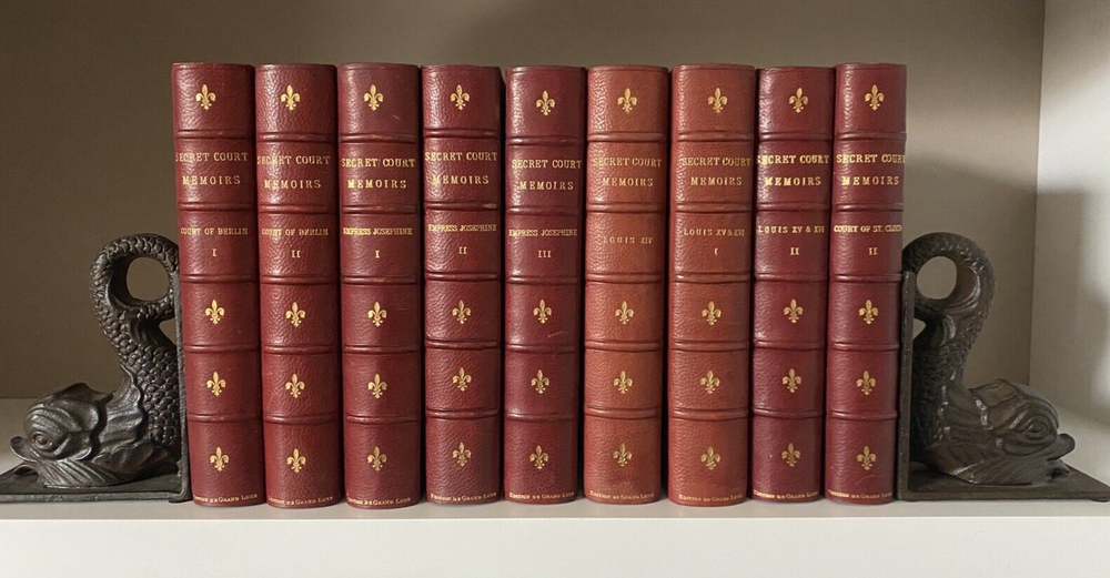 No date circa 1895. Leather. Condition: Near Fine/Fine. Various (illustrator). A finely bound collection of memoirs written from various European courts throughout the past few hundred years, illustrated throughout. An edition de luxe, limited to one thousand copies. All of these volumes match 730/1000, rare to find matching books. A selection of salacious memoirs written in various European courts, documenting turbulent times in European history, such as the French Revolution. EDITION DE GRAND LUXE. The Secret Court Memoirs. Bound in gorgeous raspberry 3/4 red morocco leather bindings with marbled paper inserts and matching marbled paper end pages. Gilded fleur de lys and titled spines. Raised hubs. Printed on thick quality rag paper. Wide margins. Illustrated with engraved plates. Top edges are gilded, deckled side and bottom. The leather is very fresh and supple. No interior marks or any condition issues to note. Internally these are fresh, bright, and clean. Approx. 9.25 x 7 inches. These are exceptionally high quality bindings. These display beautifully. This set would make an excellent gift and/or addition to any fine library. In addition to their shelf presence, antiquarian books make an excellent investment. - Secret Memoirs of the Court of Louis XIV and of the Regency, by the Duchesse d'Orleans, complete in one volume. Illustrated with a frontispiece, and five plates. - Secret Memoirs of the Courts of Louis XV and XVI, from the memoirs of Madame du Hausset, and from the journal of Princess Lamballe, complete in two volumes. Volume I illustrated with a frontispiece, and four plates. Volume II illustrated with a frontispiece, and five plates. - Secret Memoirs of the Court of the Empress Josephine, by Madame Ducrest, complete in three volumes. Volume I illustrated with a frontispiece, and five plates. Volume II illustrated with a frontispiece, and five plates. Volume III illustrated with a frontispiece, and six plates. - Secret Memoirs of the Court of St. Cloud, in a Series of Letters from a Gentleman at Paris to a Nobleman in London, complete in two volumes. Volume I illustrated with a frontispiece, and four plates. Missing Volume II. - Secret Memoirs of the Court of Berlin or the Character of the King of Prussia, His Ministers, Mistresses, generals, Courtiers, Favourites, and the Royal Family of Prussia, written by Count Mirabeau, complete in two volumes. Volume I illustrated with a frontispiece, and four plates. Volume II illustrated with a frontispiece, and six plates. Store item code MJBCMC. Photos are of the actual item being sold and they are to be considered part of the description. We consider all offers in relation to current market values and we try to respond almost immediately. Your purchase will be packed carefully and shipped quickly. We are available 7 days a week. Please see other listings for books and collectibles that might be of interest to you and follow North*Star*Collectibles as we post new items every week. Thank you for looking and come again soon, North*Star*Collectibles Member of the Ephemera Society of America and SNEAB Southern New England Antiquarian Booksellers