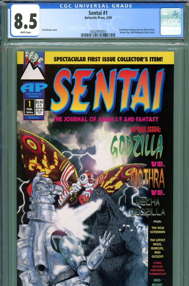 SENTAI #1 *** CGC GRADED *** * Antarctic Press * All comic books are sent via priority mail. Third party graded books are sent bubble wrapped and boxed. All orders are shipped out within 24 hours. No international orders Orders that total more than $100 will have required insurance added to the invoice. Please request combined shipping prior to payment. To avoid fraudulent claims, all items are photographed prior to shipping. This includes the item with the addressee's shipping label next to it. Though returns are rare, you must send the item back in the same condition it was sent. USPS RULES: Even though only a very tiny percentage of our items may arrive damaged due to the USPS handling of the item, you need to save the packaging in order for us to file a claim for you.