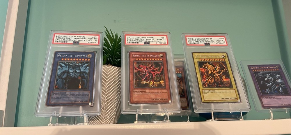 This is a dream set for any Yu-Gi-Oh! collector—three flawless PSA 10 Egyptian God cards in a rare sequential lineup! The Secret Rare finish makes them pop, and their Ultimate stage promo status adds serious prestige. Authenticated and pristine, these legendary cards are a must-have for fans of the game. Holding Slifer, Obelisk, and Ra in top-grade condition feels like owning a piece of TCG history. Absolutely stunning and worth every penny for serious collectors!