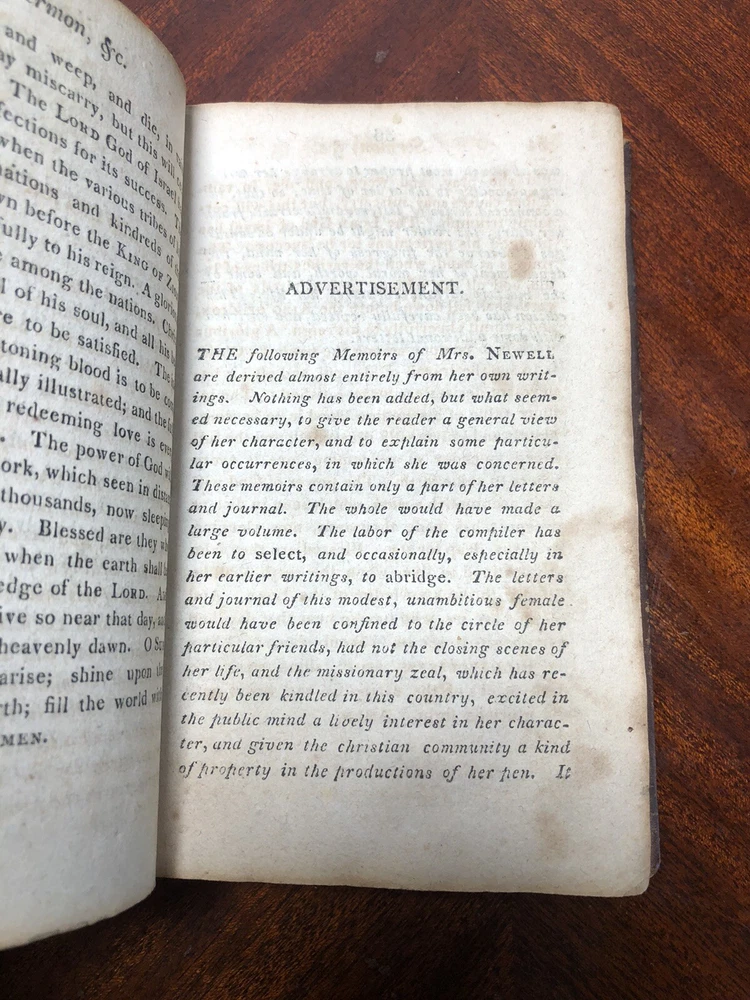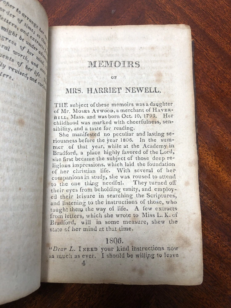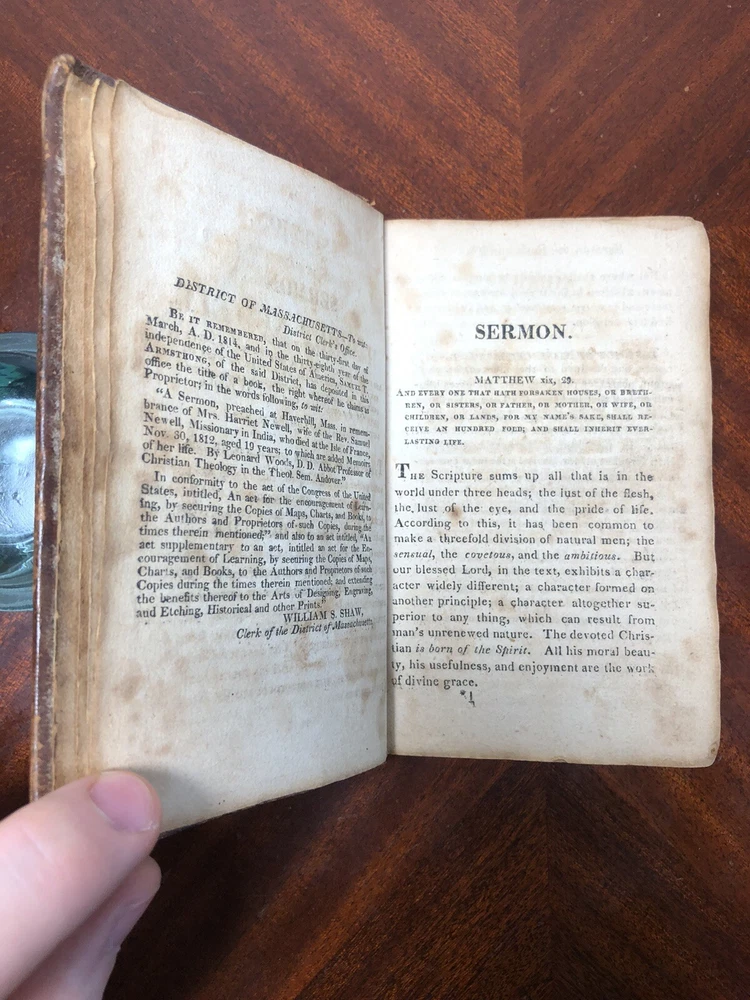 Sermon & Memoirs of Harriet Newell, 1814 Antique Christian Martyr India Leather. Shipped with USPS Media Mail....