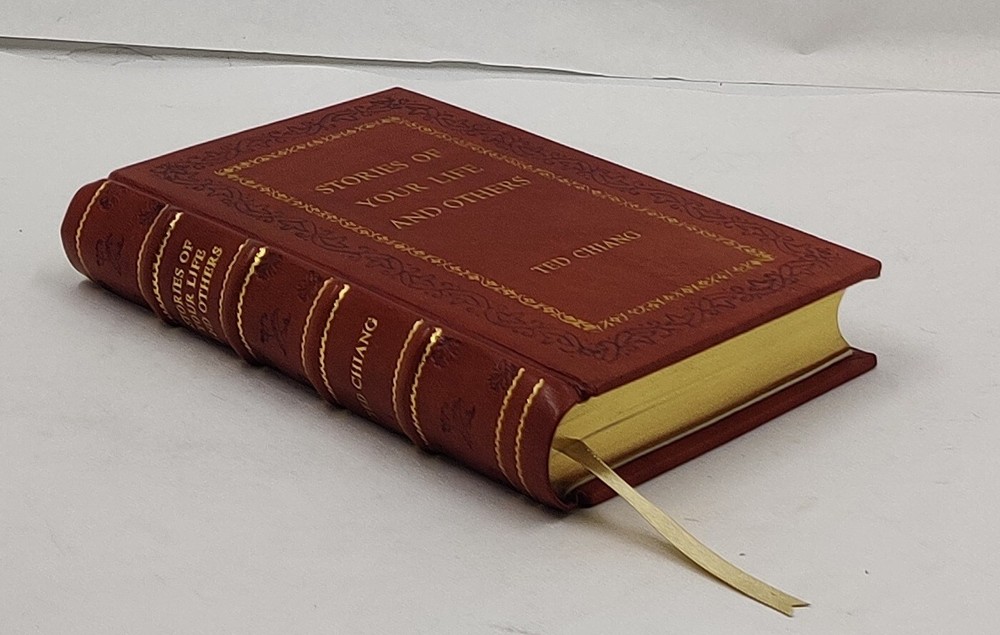 Note: This is not a reprint. The original paperback or hardcover edition has been purchased directly from the authorized distributor or publisher. The book purchased has been carefully bound in genuine leather to enhance its durability and extend its shelf life. Please be assured that no content or pages have been altered or reformatted during the leather binding process. Product Information: - Title of Product:Stories of Your Life and Others by Chiang, Ted [PREMIUM LEATHER BOUND] Author: Chiang, Ted Number of Pages: 304 Publication Year: 2016 Language: English Book Synopsis: - From the author of Exhalation, an award-winning short story collection that blends "absorbing storytelling with meditations on the universe, being, time and space ... raises questions about the nature of reality and what it is to be human" (The New York Times).Stories of Your Life and Others delivers dual delights of the very, very strange and the heartbreakingly familiar, often presenting characters who must confront sudden change--the inevitable rise of automatons or the appearance of aliens--with some sense of normalcy. With sharp intelligence and humor, Chiang examines what it means to be alive in a world marked by uncertainty, but also by beauty and wonder. An award-winning collection from one of today's most lauded writers, Stories of Your Life and Others is a contemporary classic. Includes "Story of Your Life"--the basis for the major motion picture Arrival Product Description: This exquisite book is crafted exclusively for discerning readers and collectors who seek to elevate and preserve their literary treasures. Bound in GENUINE LEATHER, it showcases the finest craftsmanship with luxurious GOLDEN LEAF DETAILING adorning the spine, front cover, and back cover. The elegance is further enhanced by EDGE GILDING, giving the book an opulent finish. Customize Your Leather-Bound Edition with Color Options: - 1. Select from a wide array of leather colors at no additional cost. Share your preferred leather color with us via email. 2. Choose from a diverse range of leather colors with colored marbles (endpaper), including Brown, Crimson Red, Forest Green, Royal Blue, Rich Black, Hot Pink, Yellow, And Tan . 3. For a truly unique touch, request Multi-Color Labels to complement your custom leather-bound book spine. 4. Own a timeless masterpiece that adds sophistication to any collection! Artisan Quality and Dispatch Information: - ● We appreciate your understanding that these Leather-Bound Books are meticulously crafted works of art, requiring significant time and attention to detail to achieve their exceptional quality. ● Our standard handling time for dispatch is 35 business days, as each book undergoes various stages of production. However, we do accommodate special & requests for specific occasions. ● We offer additional customization options upon request, subject to extra charges. Additionally, we handle both printing and leather binding for all books. ● Product Disclaimer : Please note that as Leather is a Natural Material, minor variations in color or texture may occur.