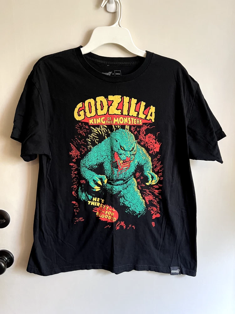 Godzilla may have evolved to become a friend and protector of humanity, but that’s a far cry from its early days as a malevolent, even blood-thirsty, force of chaos and destruction! This Toho Thirsty for Blood Godzilla t-shirt is inspired by the cover art from the first issue of the comic book Godzilla, King of the Monsters and depicts the misunderstood monster literally dripping with blood as he wreaks a path of death and destruction! 100% cotton, machine washable, COLOR: BLACK; SIZE: LARGE