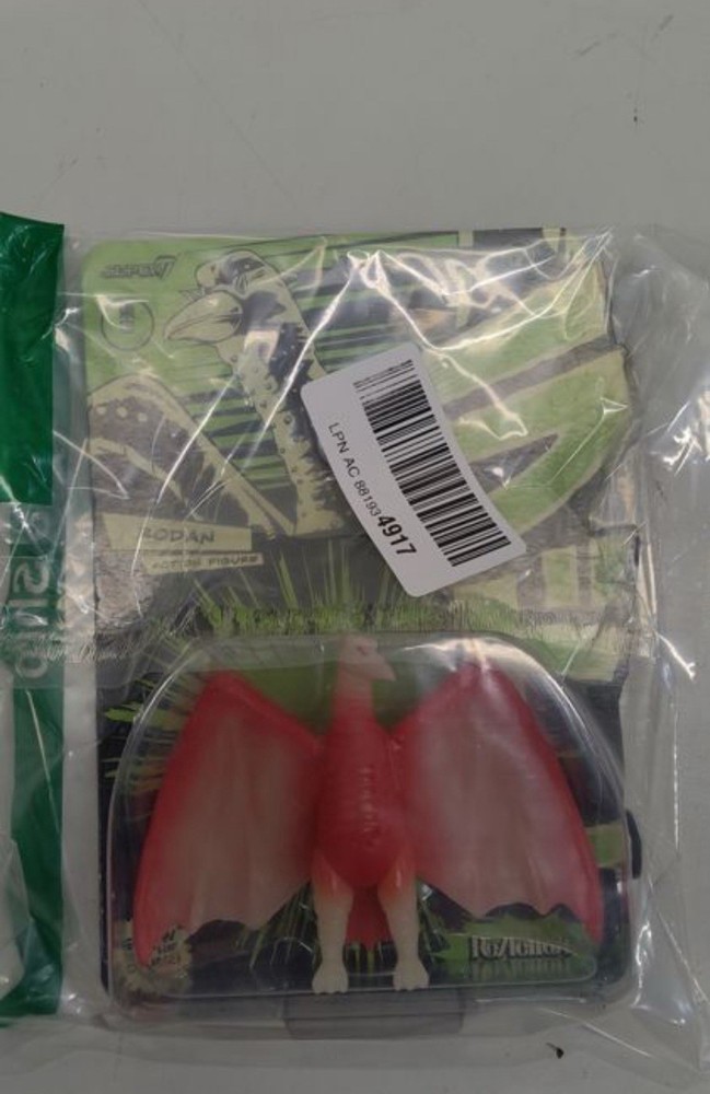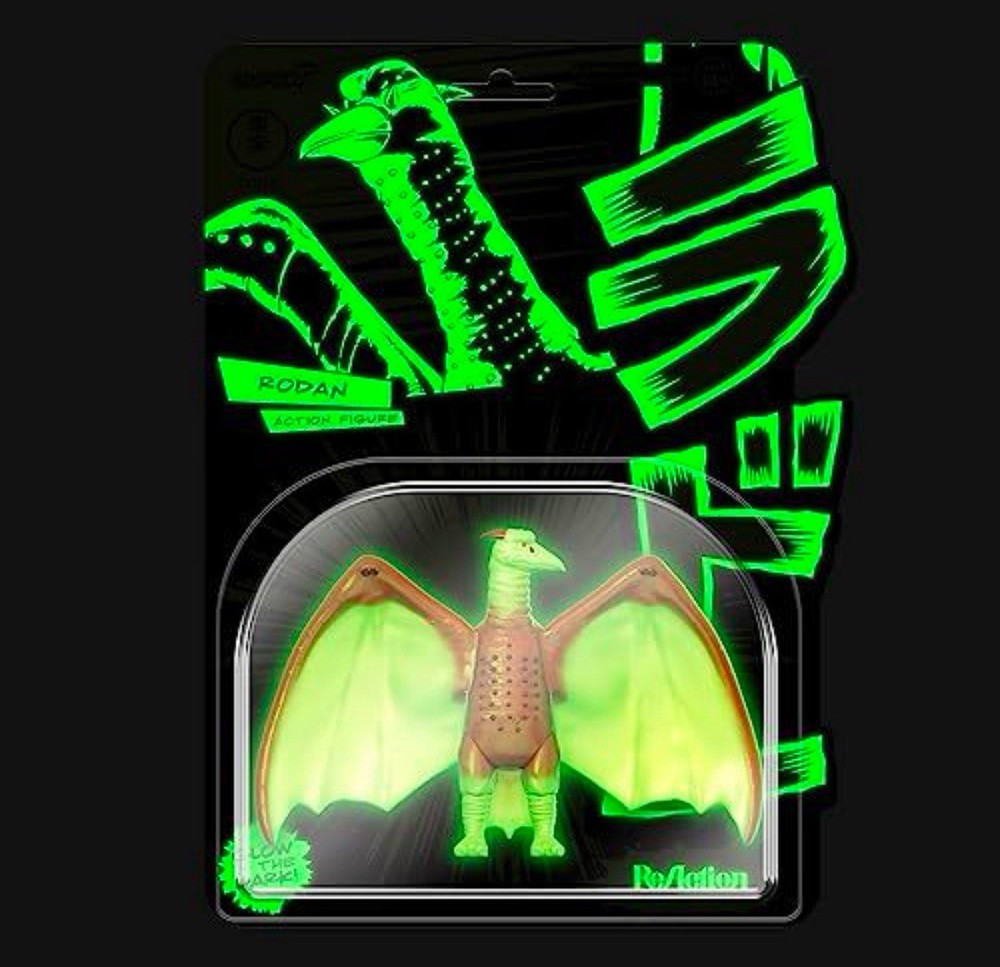 The Super7 ToHo ReAction Rodan NYCC GLOW Godzilla Wave 1 2022 3 3/4" action figure is a highly sought-after collectible for fans of the Godzilla franchise. This exclusive figure features the character Rodan in a glow-in-the-dark design, making it a unique addition to any action figure collection. Made of plastic and officially licensed by Super7, this mint new figure is a must-have for collectors looking to showcase their love for the iconic Godzilla series.