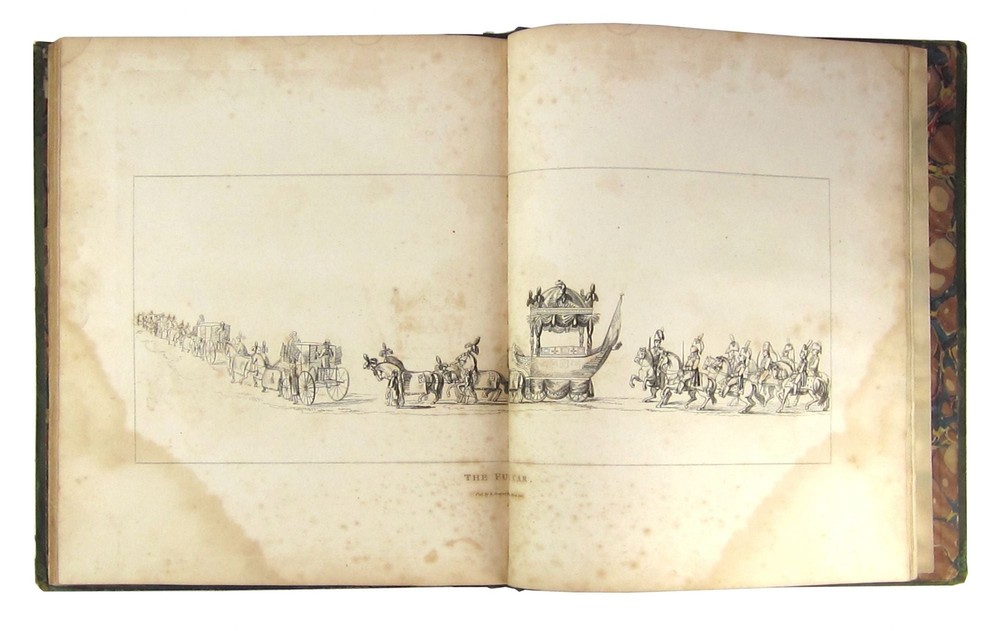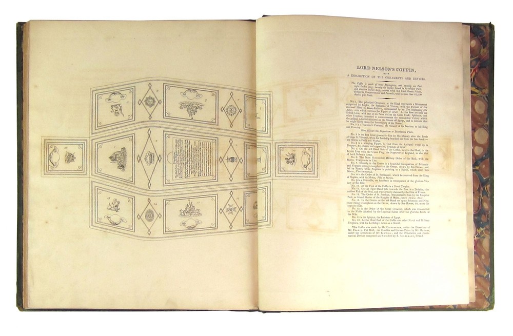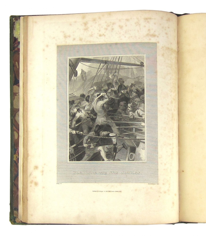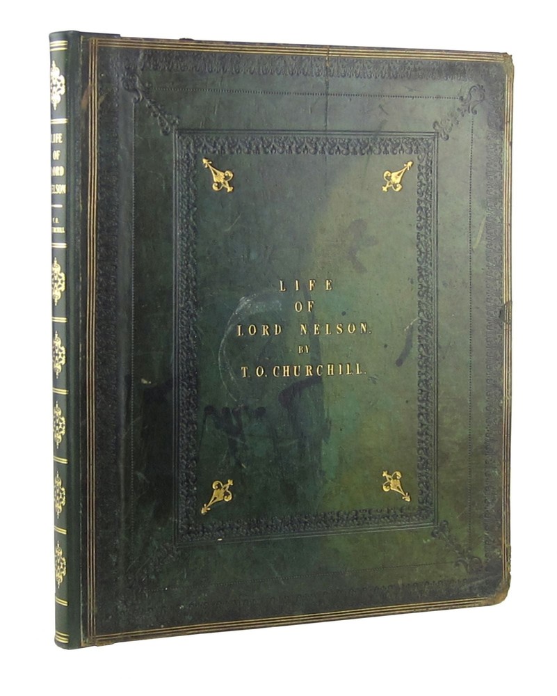 The Life of Lord Viscount Nelson, Duke of Bronté, &c Author: T. O. Churchill Title: The Life of Lord Viscount Nelson, Duke of Bronté, &c Publication: London: T. Bensley, 1808 Description: Very Good. London: T. Bensley, Bolt Court, 1808. First Edition. Large quarto (35x29cm); viii + 102pp. Of 15 original full-page or two-page copper engravings, seven are lacking (including the portrait frontispiece and the facsimile letter), eight remain. Lowndes I, 449. Sea-green leather boards with gilt and black stamped borders, frames and ornaments on both panels. Rebacked in matching leather with gilt spine lettering. Marbled endpapers. Textblock of heavy wove cream paper; textblock gilt on all edges. The boards, now stabilized and robust, show knocks and erosion at corners and edges-and have seen service, alas, as coasters for beverages on more than one occasion, with additional streaked scuffing and scraping. The hinges have been reinforced with sea-green binder's tape. The textblock shows liquid staining at upper corners of first 22 pages, and on the lower outer quadrants of the final eight pages. Despite its seven amputed engravings, the volume remains very handsome, not unlike Lord Nelson himself, whose looks were undiminished despite his missing right arm. The remaining engravings are crisp and clear. Seller ID: 7128 Subject: Biography / Memoir, England / English Writers, Military History, Nautical & Maritime Capitol Hill Books is a used bookstore located on historic Capitol Hill in Washington DC, with three floors of quality used books, first editions, and rare books. [Note: Our online inventory is stored and managed at a separate location from at our brick and mortar shop. If you have a question about an item listed online, please send a direct message here rather than calling the store so that we can make sure someone familiar with the item in question can respond.] Terms Books described only as First Editions are First Printings unless otherwise specified. All items are guaranteed to be as described or they may be returned within 30 days of receipt for a full refund. All orders ship within two business days. Standard mail is USPS Media Mail. Expedited and international shipping are also available (please contact for estimates). We offer combined shipping on multiple orders. This listing was created by Bibliopolis.