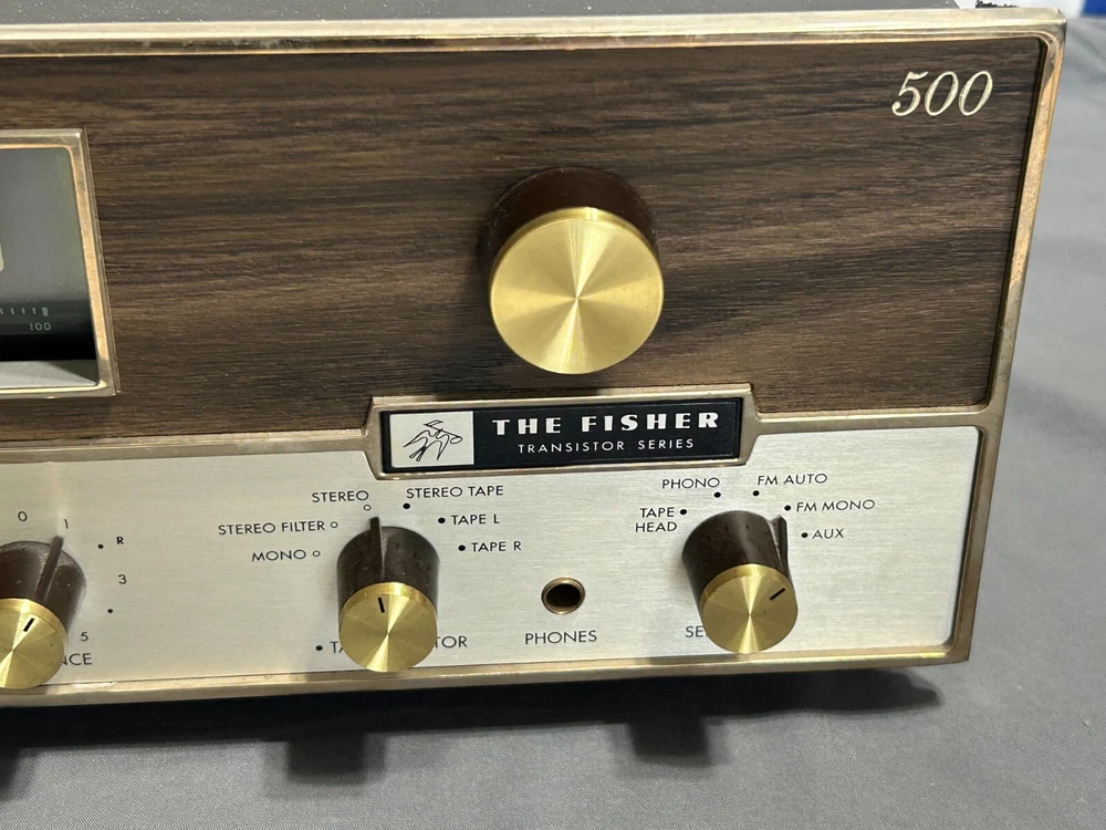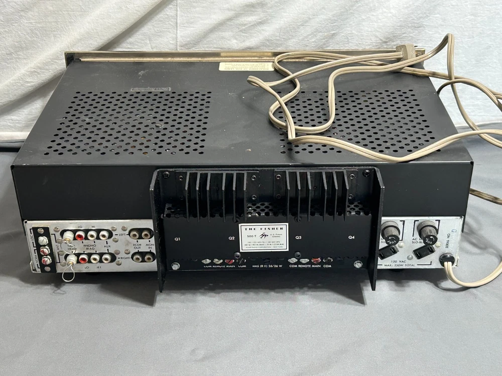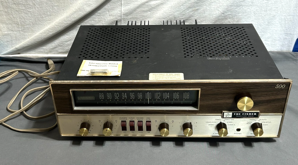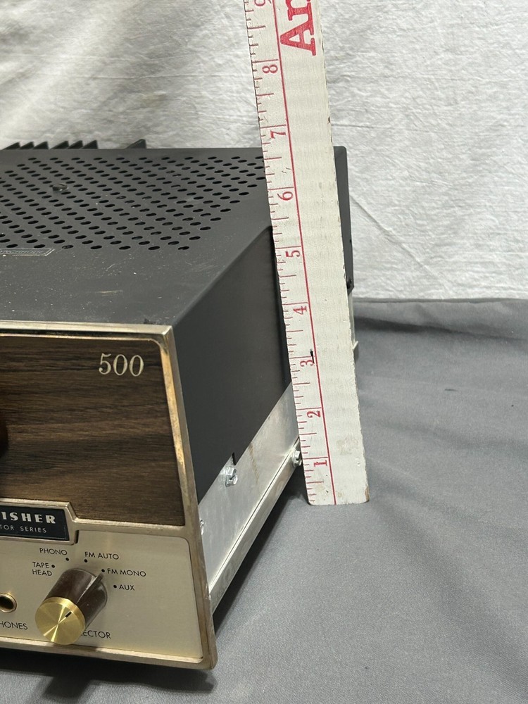 I have other vintage electronic items listed as well as more collectibles and unique items. I will combine shipping. Here is a very nice vintage THE FISHER 500-T Transistor Series FM Stereo Receiver. This is set up to use 2 or 4 speakers. All 4 channels work. The card with the fuses were with this, so I'm selling them with it. The bottom feet are all good. The measurements are in the pics. WATCH THE VIDEO for proof that all speaker connections work. I tested the balance/bass/treble/speaker selection and the tuning knob. I did NOT test the jacks on the back. It will need some dial light bulbs replaced. The STEREO light works and the Tuning Meter works as well. Please see pics for more details. ******SOME STATES ARE NOW CHARGING SALES TAX ON PURCHASES. I THINK IT'S BS AND WRONG, BUT EBAY DOES IT AUTOMATICALLY. I HAVE NO CONTROL OVER IT. VOTE TO CHANGE THINGS! *****BE SURE TO CHECK THE SHIPPING TAB! THE SHIPPING SHOWN MAY NOT BE THE CHEAPEST. I USUALLY HAVE DIFFERENT CHOICES. ****** INTERNATIONAL BIDDERS : I USE THE INTERNATIONAL GLOBAL SHIPPING PROGRAM. CLICK ON THE SHIPPING TAB AND SELECT YOUR COUNTRY. IT SHOULD SHOW YOU THE SHIPPING COSTS. IF YOUR COUNTRY IS NOT SHOWN, THEN I WILL NOT SHIP THERE! I DO NOT MAKE THE IMPORT COSTS AND SHIPPING COSTS. THE EBAY SHIPPING CENTER DOES. BUYER WILL BE RESPONSIBLE FOR ANY AND ALL IMPORT COSTS. RETURNS: I will accept 'free' returns ONLY if the item is not as described. IF you don't like it, doesn't fit, changed mind, etc, there MAY be a deduction in the refund to repay the return shipping I am charged. Original shipping is NOT refundable for any reason. PLEASE understand this, especially if you are buying something that costs a lot of money to ship because you will not get that original shipping refunded and I may deduct return shipping fees (figured on a case by case basis). Thank you. **** I RESERVE THE RIGHT TO CHANGE SHIPPING CARRIERS AS LONG AS THE PACKAGE WILL ARRIVE AT THE SAME TIME, OR EARLIER, THAN WHAT THE BUYER CHOSE.