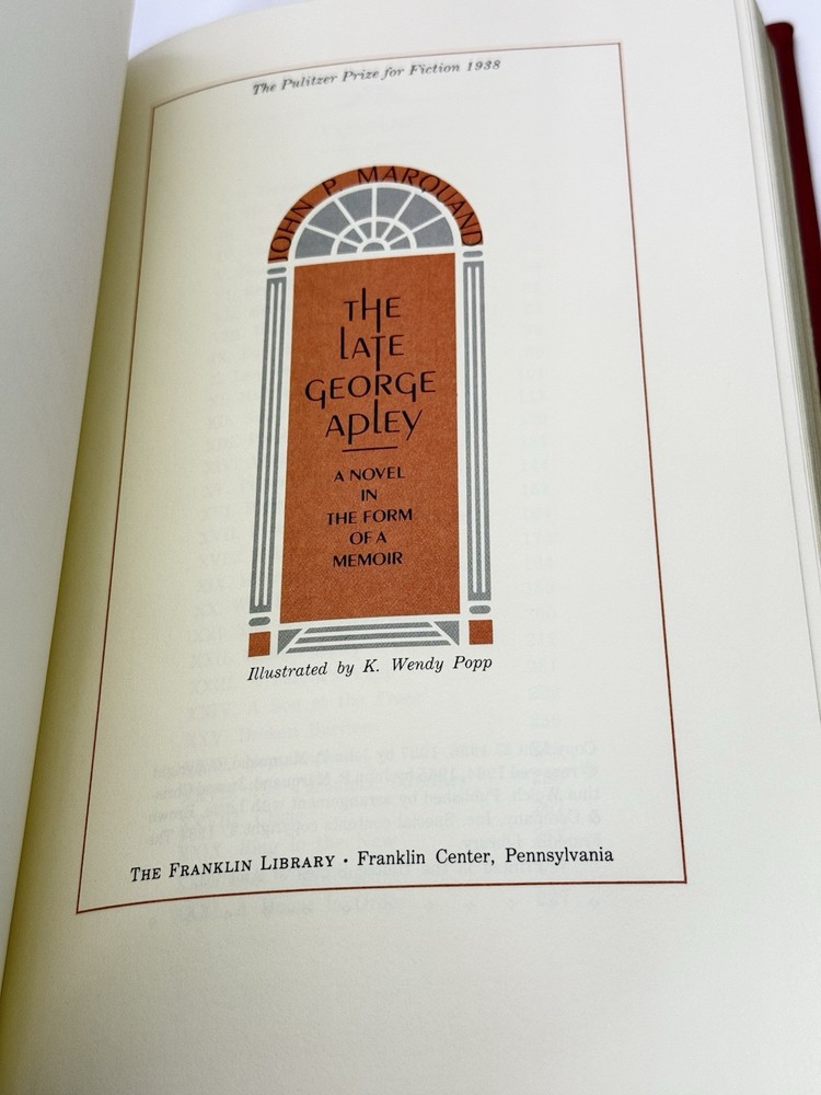 THE LATE GEORGE APLEY a Novel in the Form of a Memoir Leather Franklin 1984 F2...