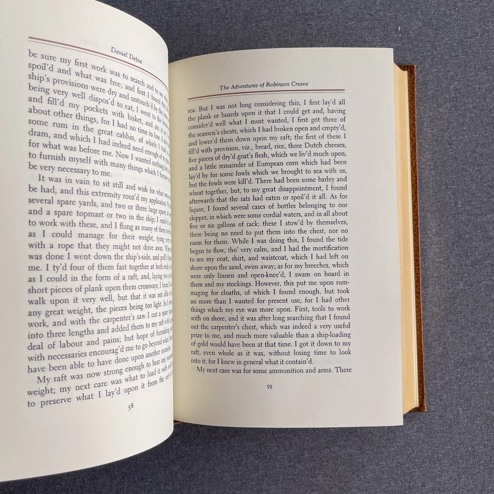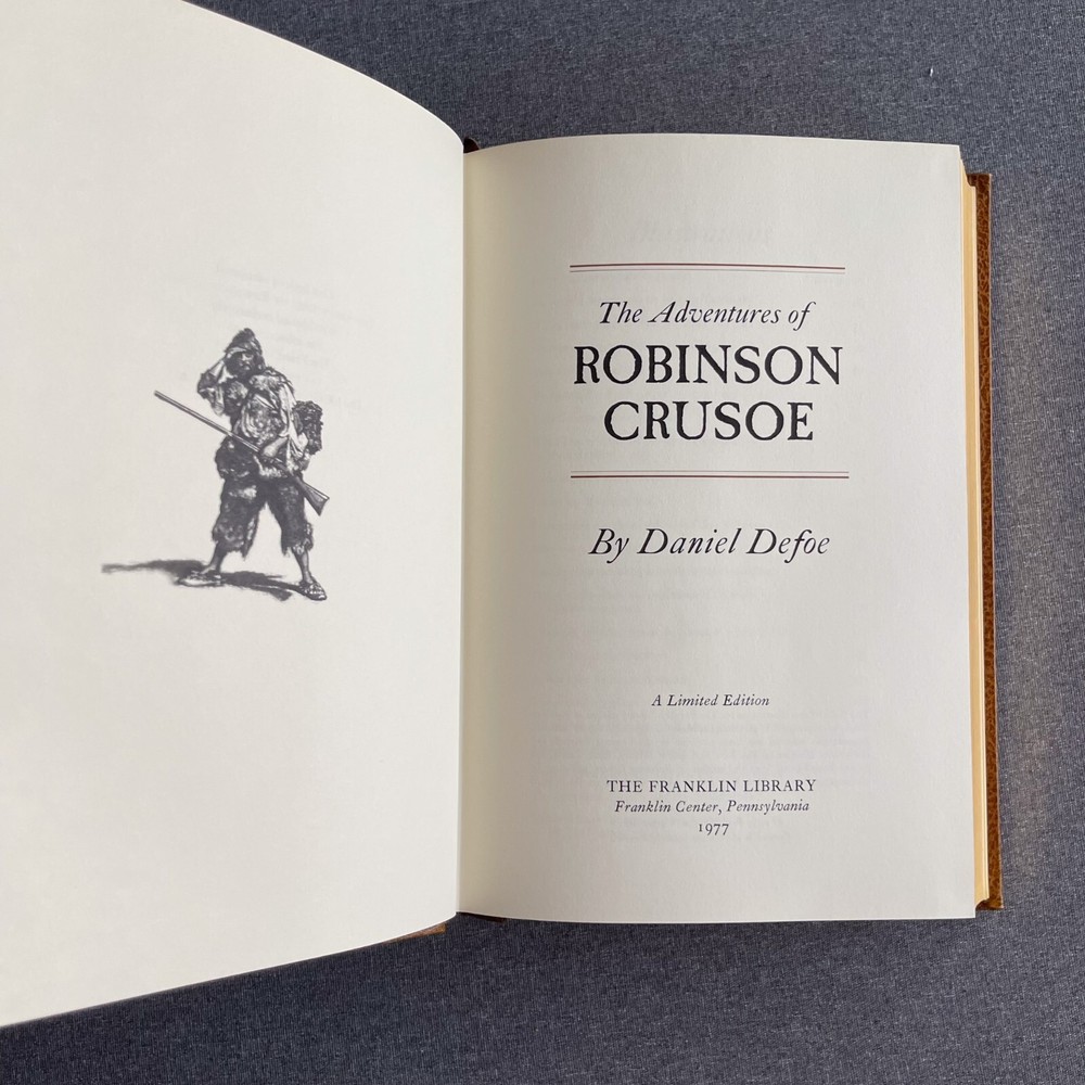 Title: "THE LIFE AND STRANGE SURPRIZING ADVENTURES OF ROBINSON CRUSOE - FRANKLIN LIBRARY Description: CONDITION: Pre-owned with normal signs of wear and tear. The cover, spine, and back show visible scuffs, some pages may have creases and there may be some staining on the front and back cover. Please refer to the images to better understand the item's condition. Details: Returns: We offer a 100% money-back guarantee. If the item does not meet your expectations, you can return it for a full refund. Shipping: The item will be dispatched within one business day upon receiving payment. Thank you for considering this item. Should you have any inquiries, concerns, regarding the product or service, please don't hesitate to get in touch. Your satisfaction is our priority, and we are committed to ensuring your complete contentment. Thank you for your purchase. "Optimize your shipping costs by acquiring multiple items! We are delighted to combine shipping for multiple purchases." Please feel free to reach out if you have any further questions.